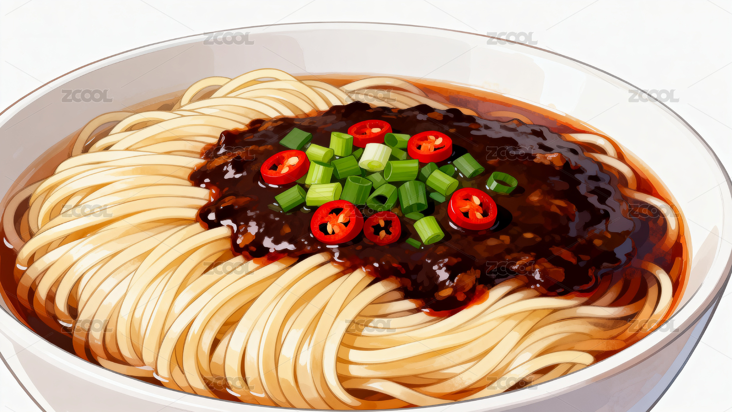 炸酱面配辣椒和葱花