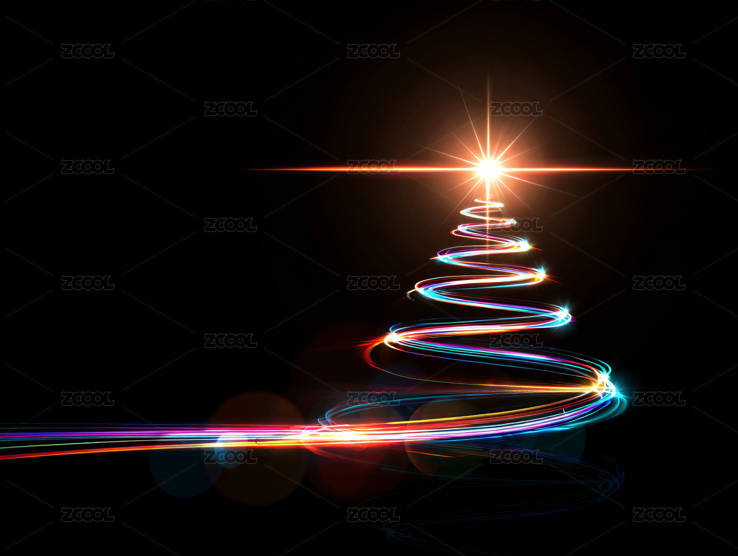黑色背景流线灯光圣诞树