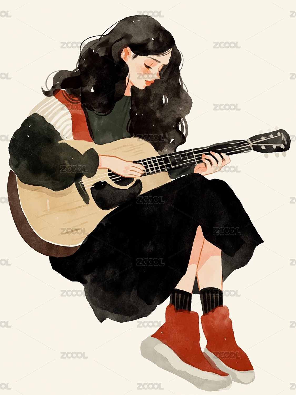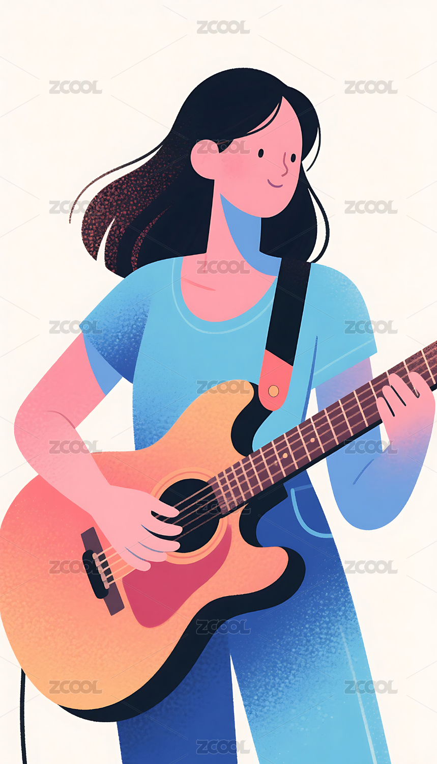 弹吉他的女孩手绘插画
