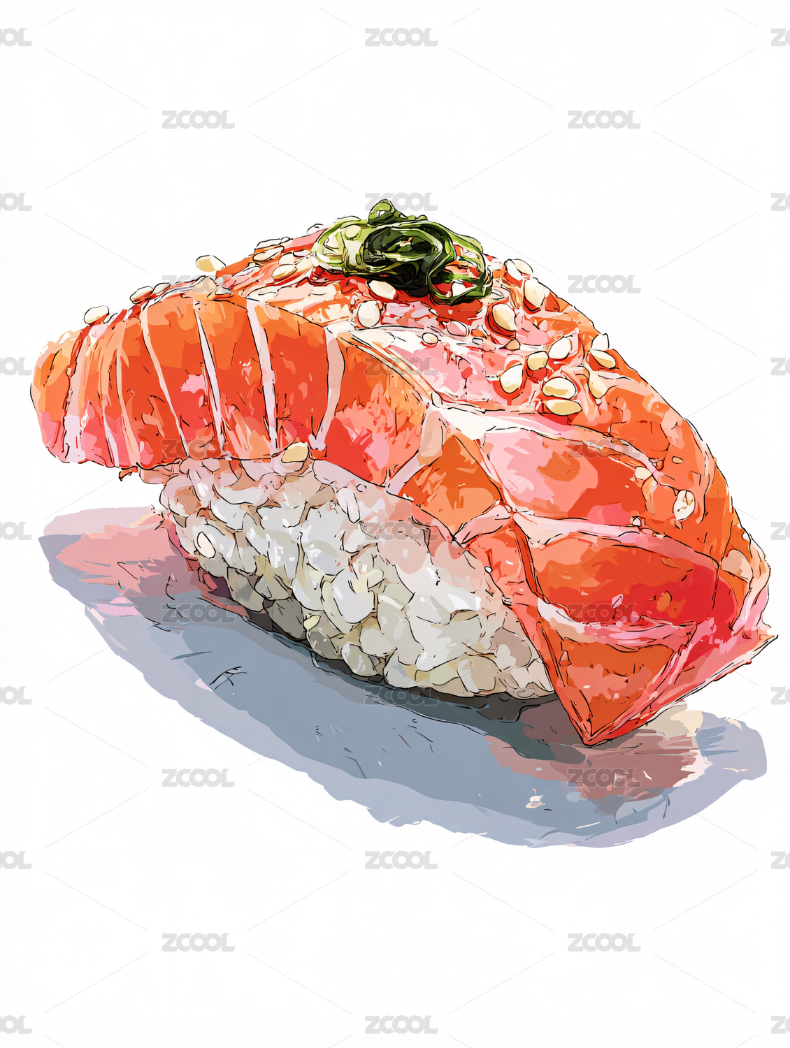 三文鱼,寿司,手绘,日式,料理,插画,日本,美食,海鲜,生鱼片