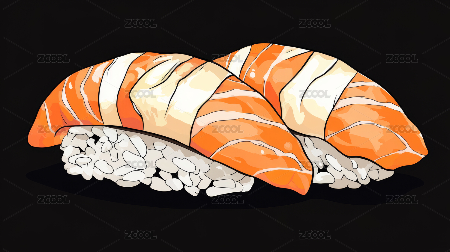 手绘三文鱼寿司插画