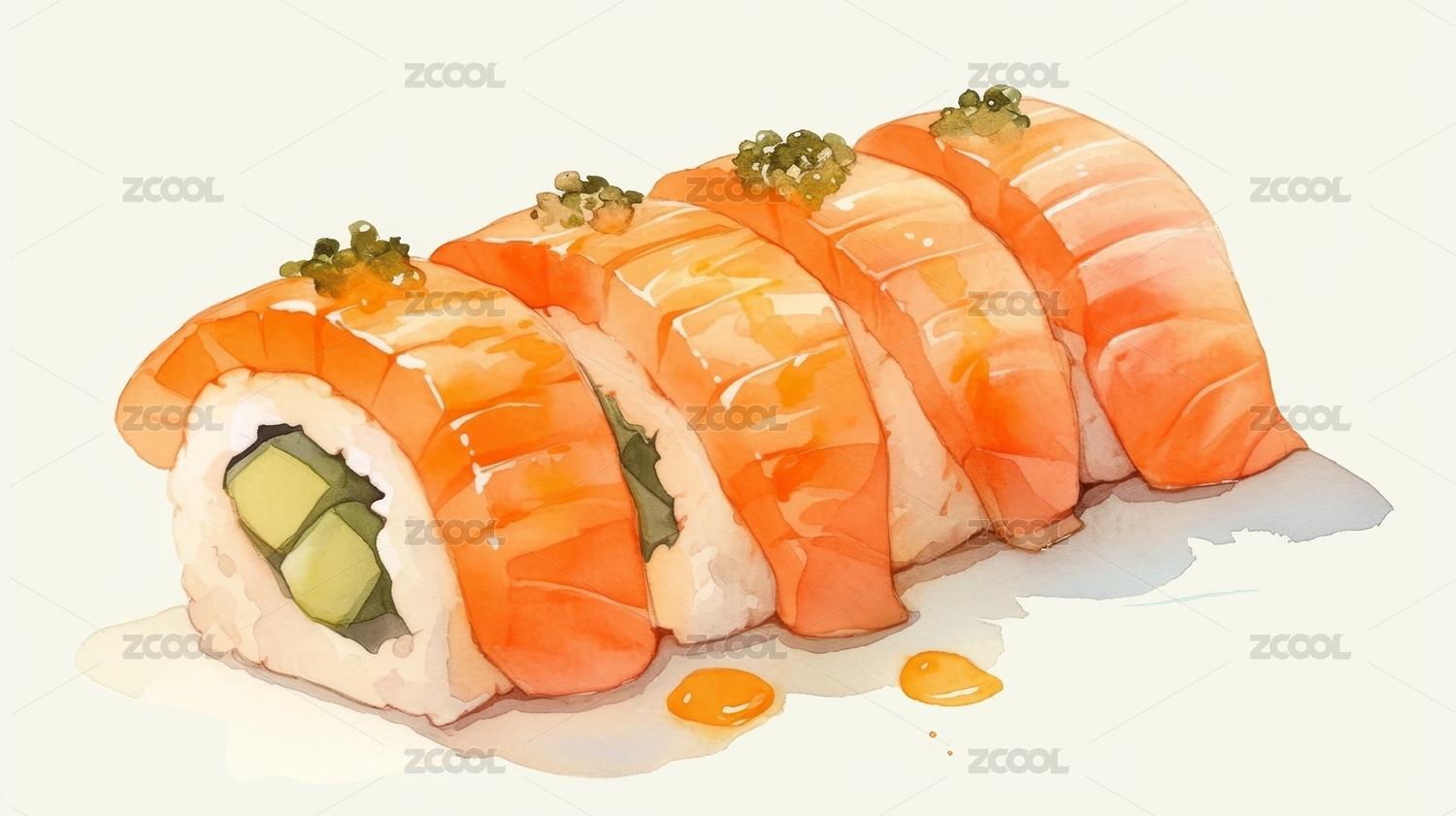 水彩画风格的美味寿司卷