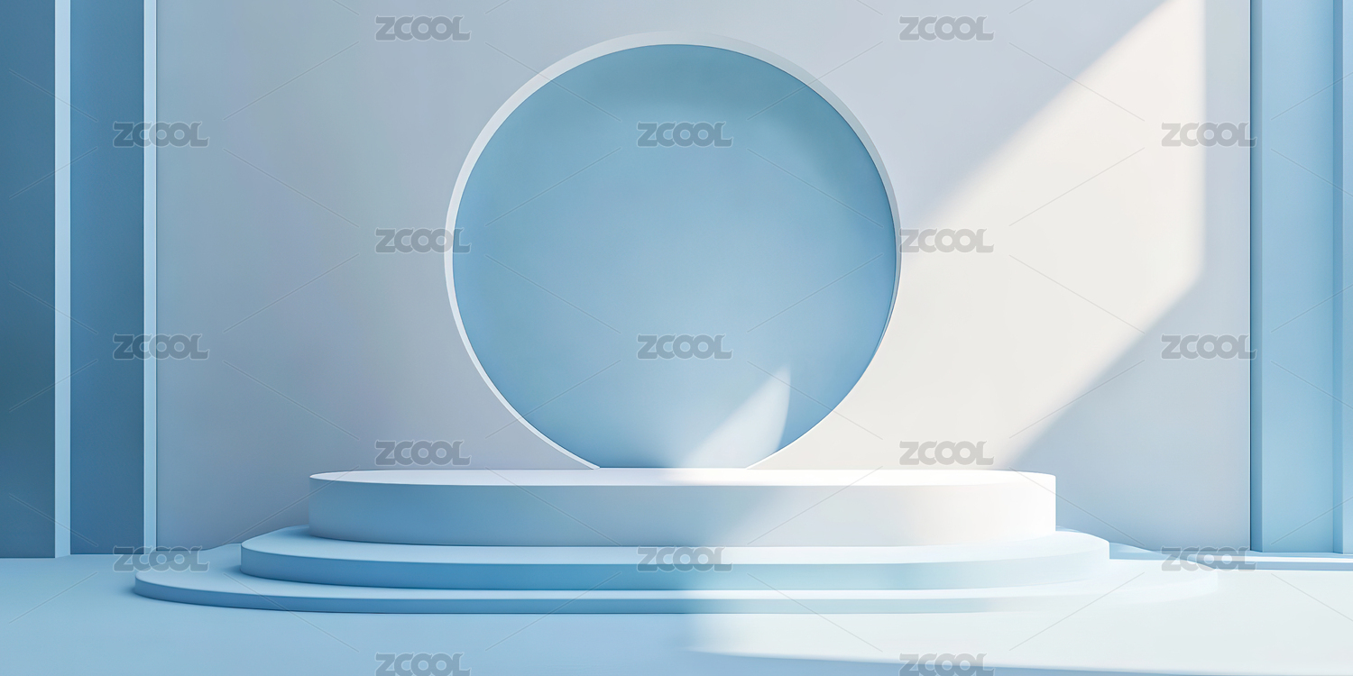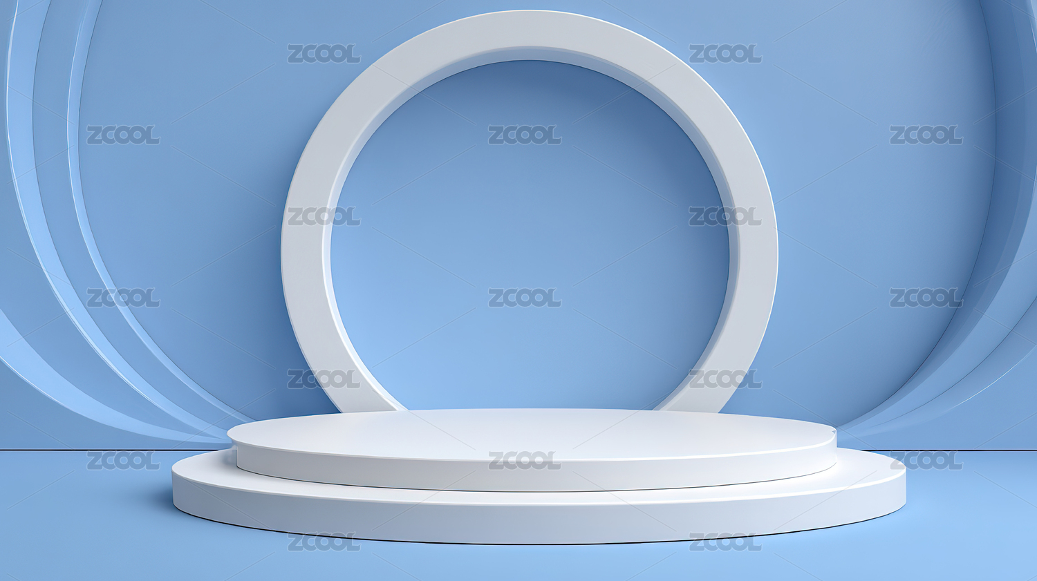 白色圆形展台与蓝色背景