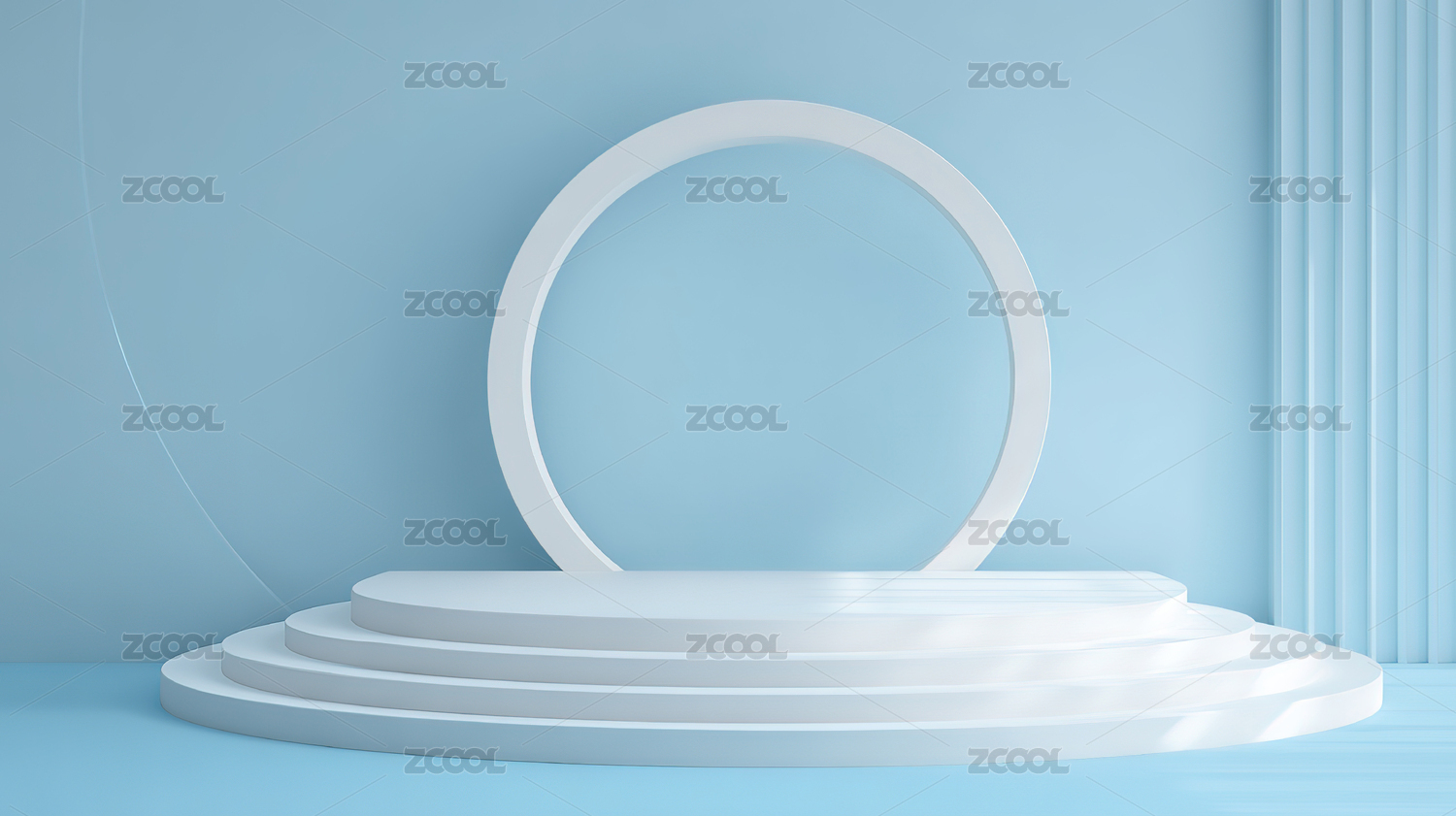 蓝色背景下的白色环形展台