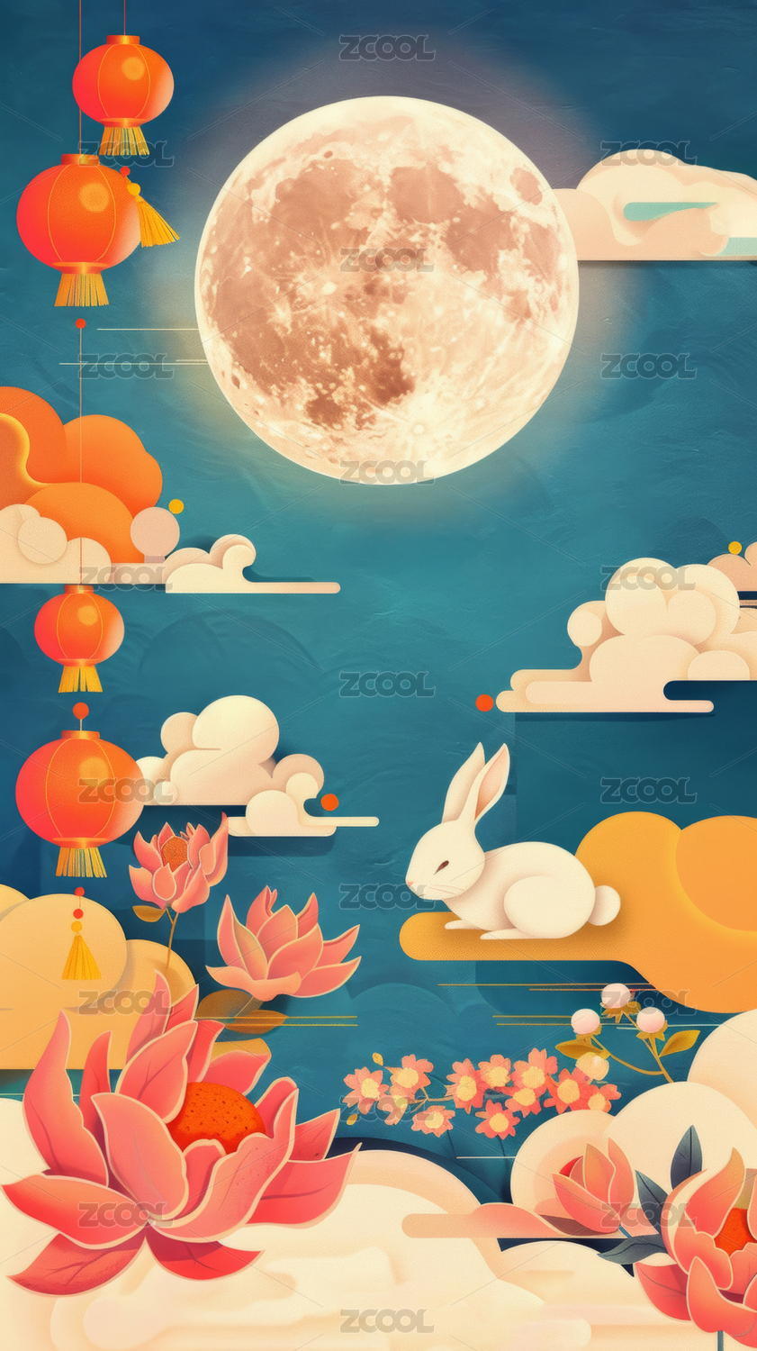 中秋节嫦娥玉兔月亮卡通漫画插画