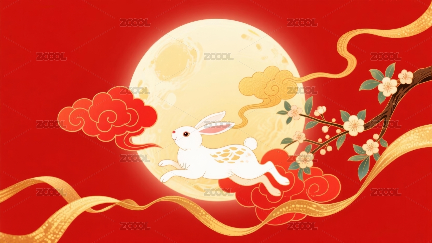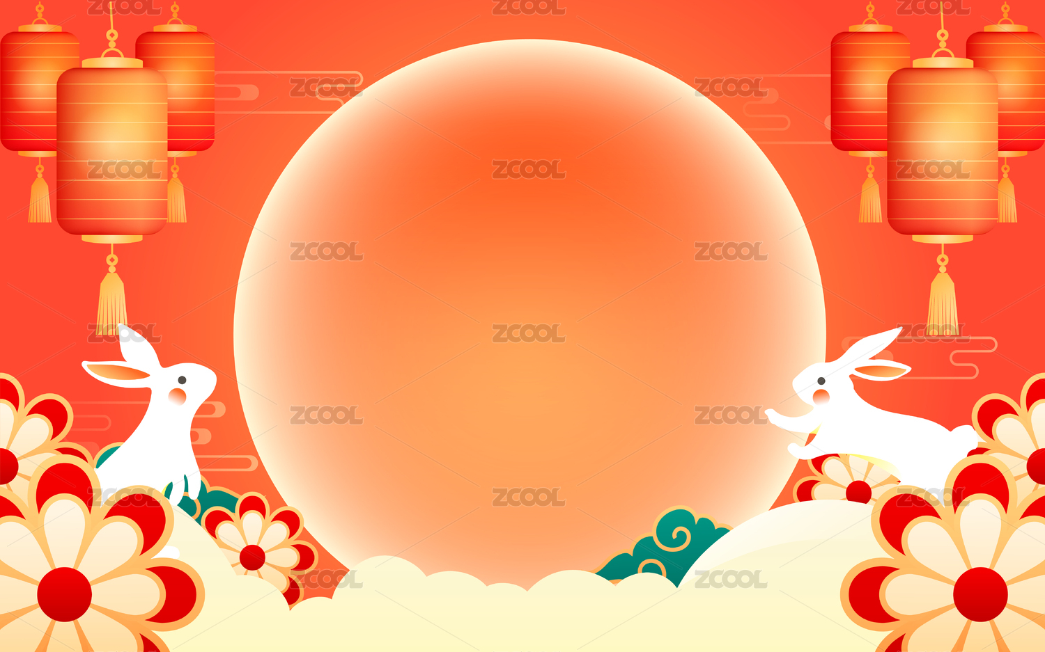 玉兔圆月中秋风场景