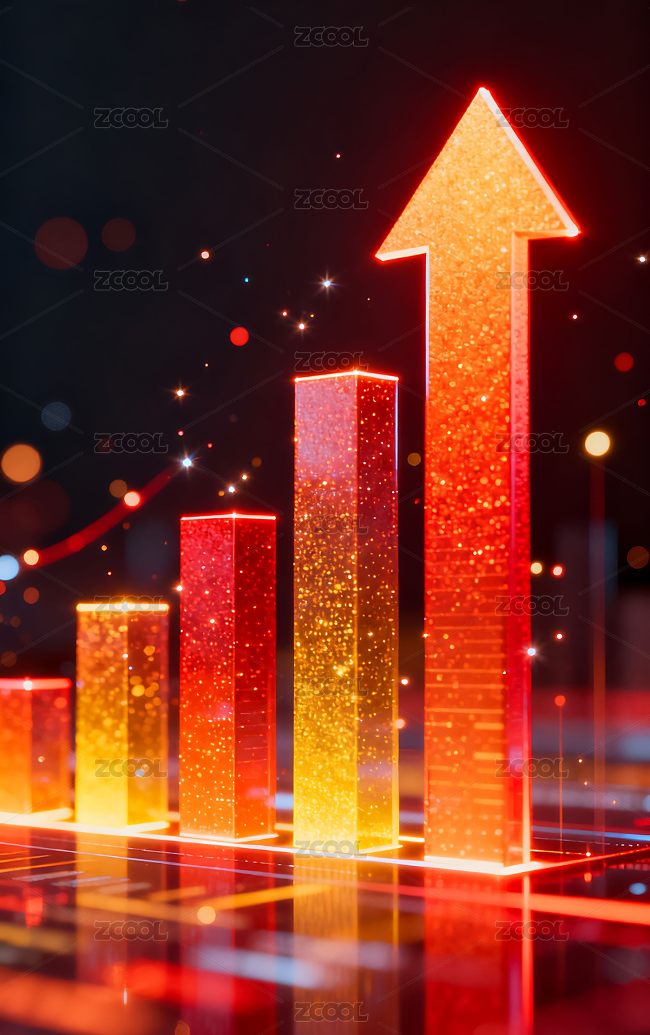 主视觉,商务,科技,金融,经济,柱状图,增长,箭头,红金色