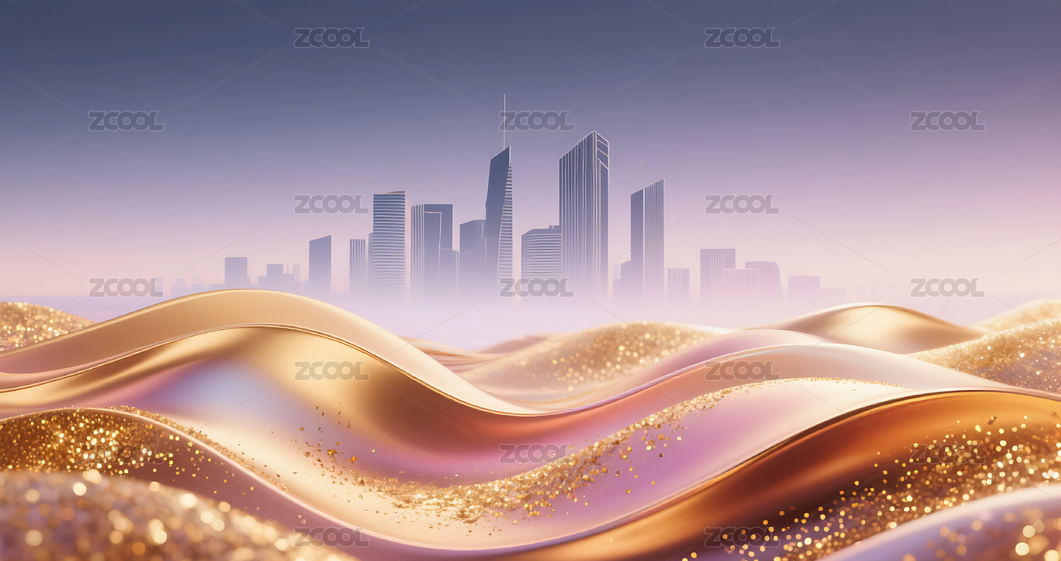 流体渐变色彩丰富颗粒感金箔城市建筑背景