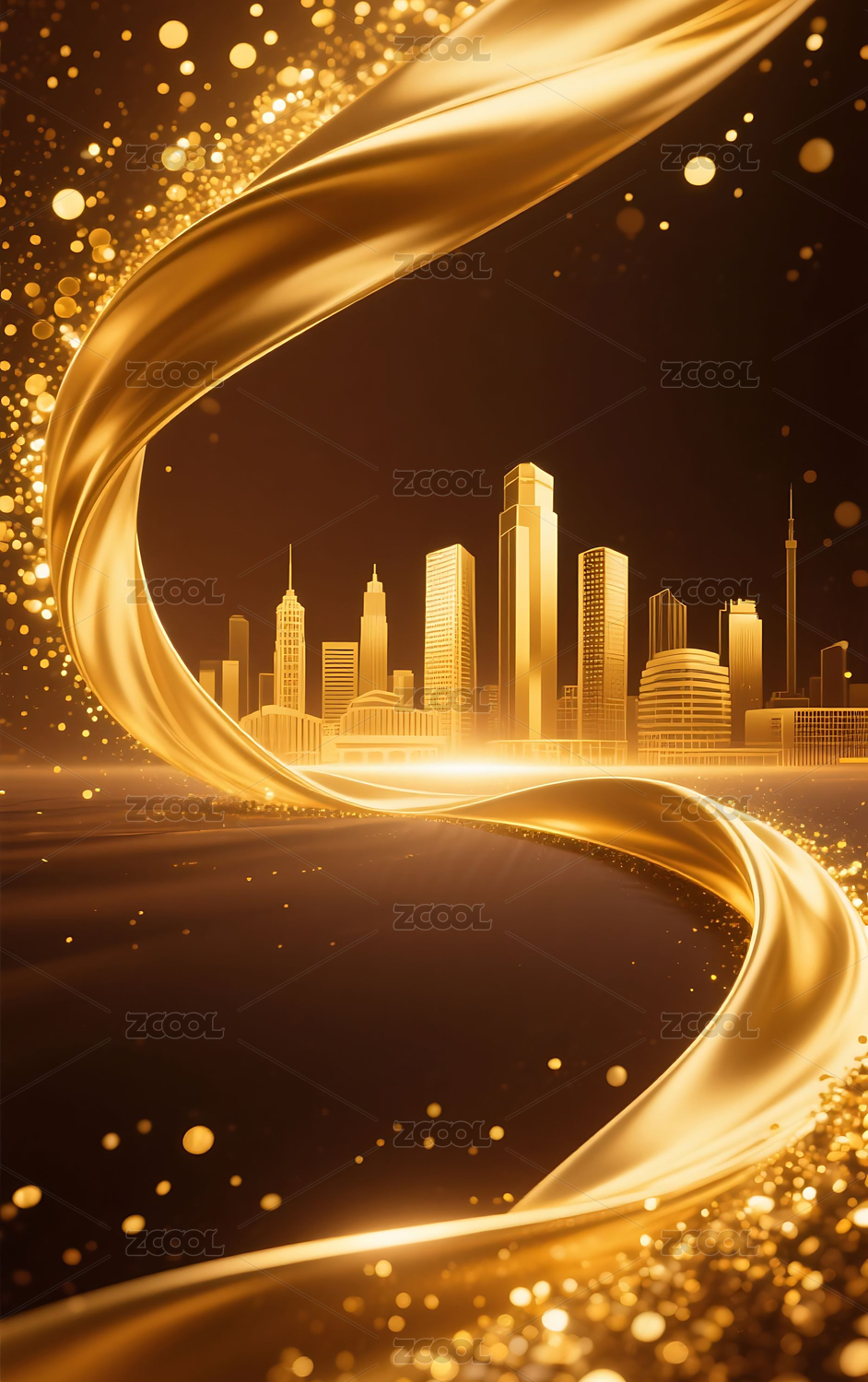 金色丝带与城市天际线