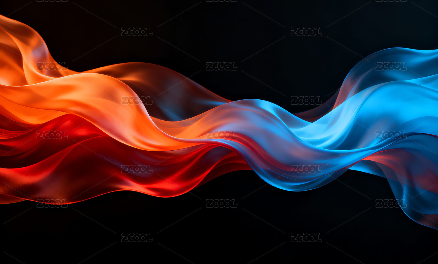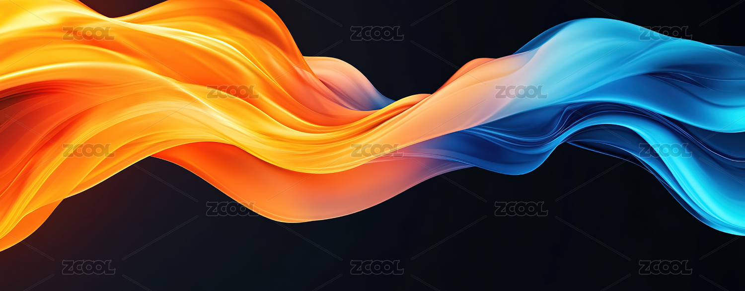 蓝橙色商务艺术时尚流动丝绸背景壁纸