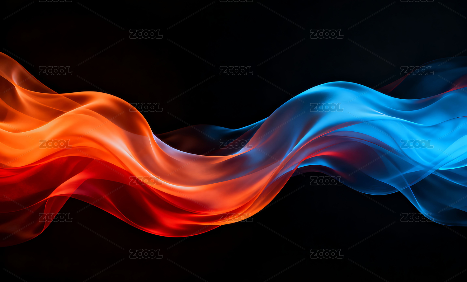 蓝橙色商务艺术时尚流动丝绸背景壁纸