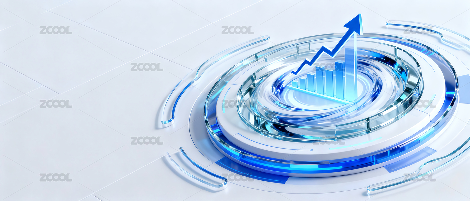 商务科技3D漩涡上的金融柱状图增长主视觉