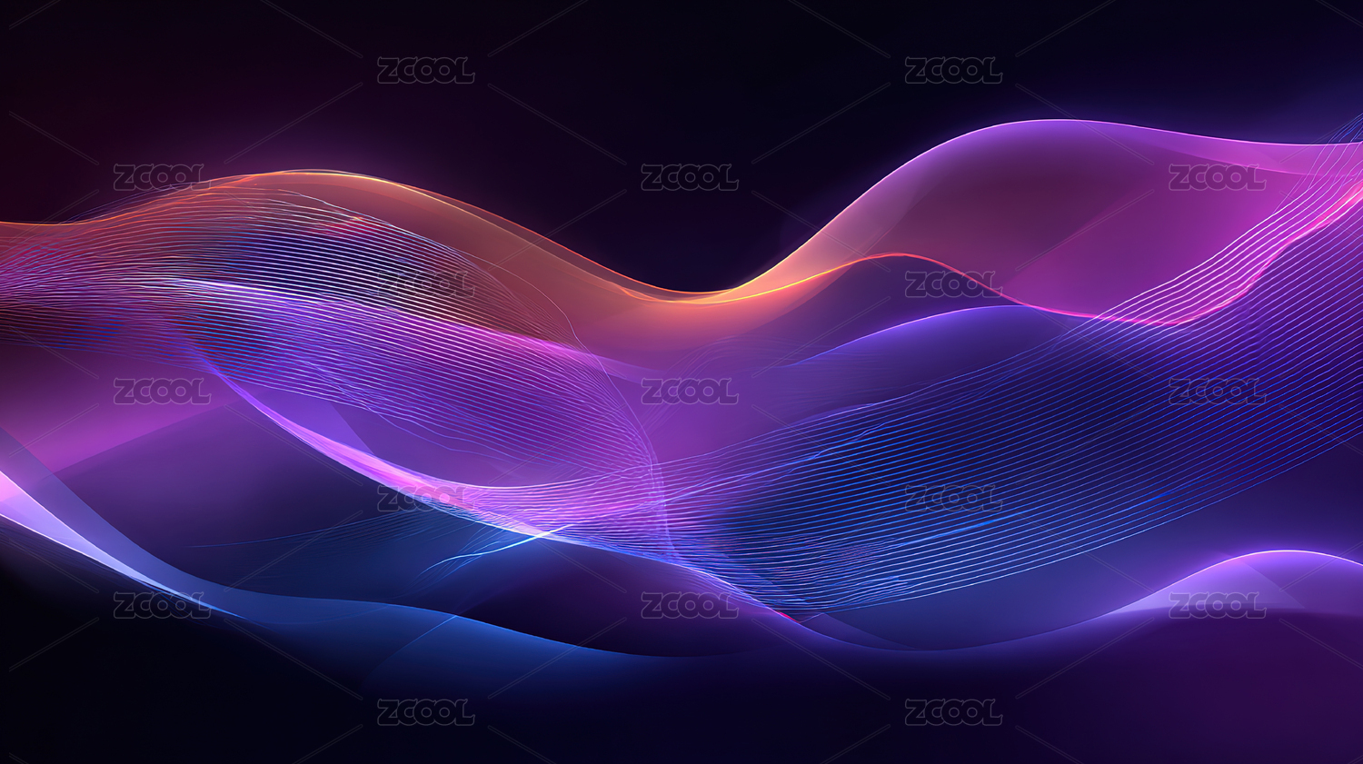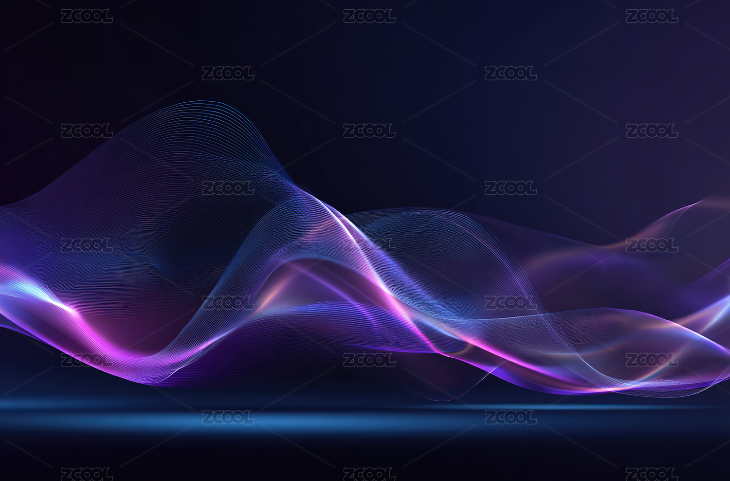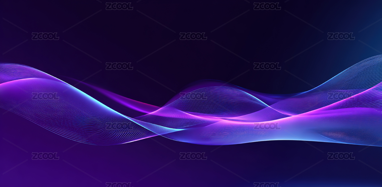 数码紫蓝色发光波浪曲线抽象图形海报背景