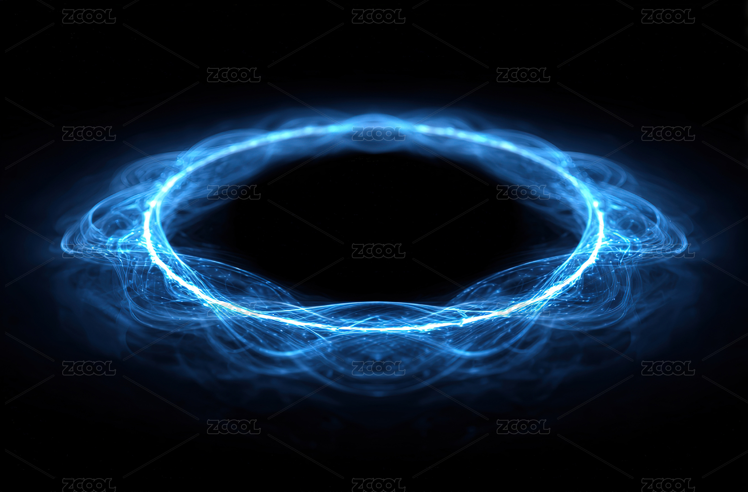 蓝色光效漩涡环绕发光圆环