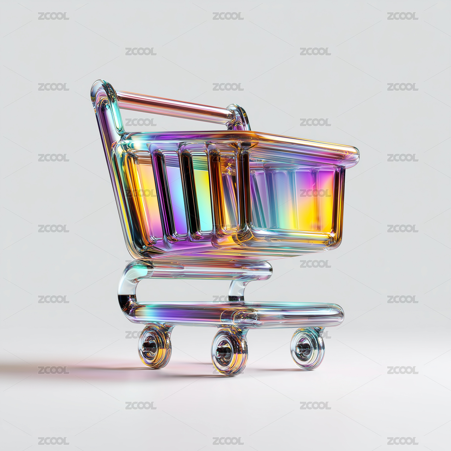 购物车,彩虹闪粉,立体,3D,可爱,萌趣,设计,创意,简约,现代