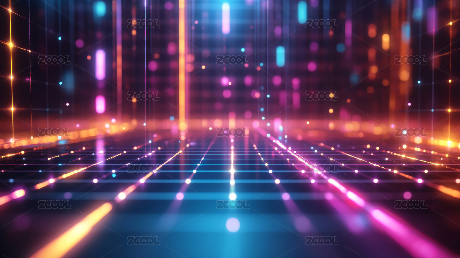 黑色背景,科技,网格,空间,光效,粒子,蓝紫色