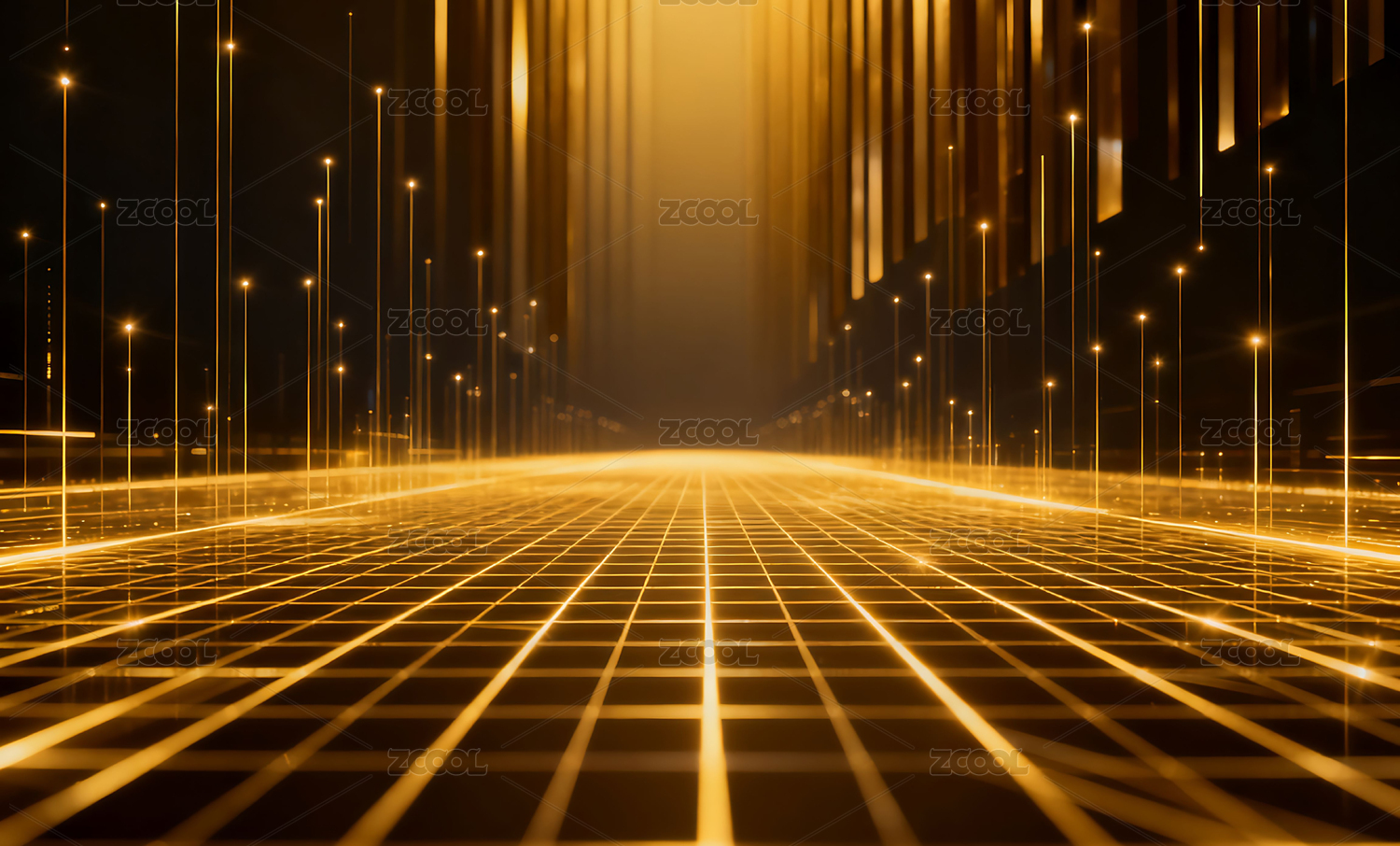 黑色背景,科技,网格,空间,光效,粒子,金色