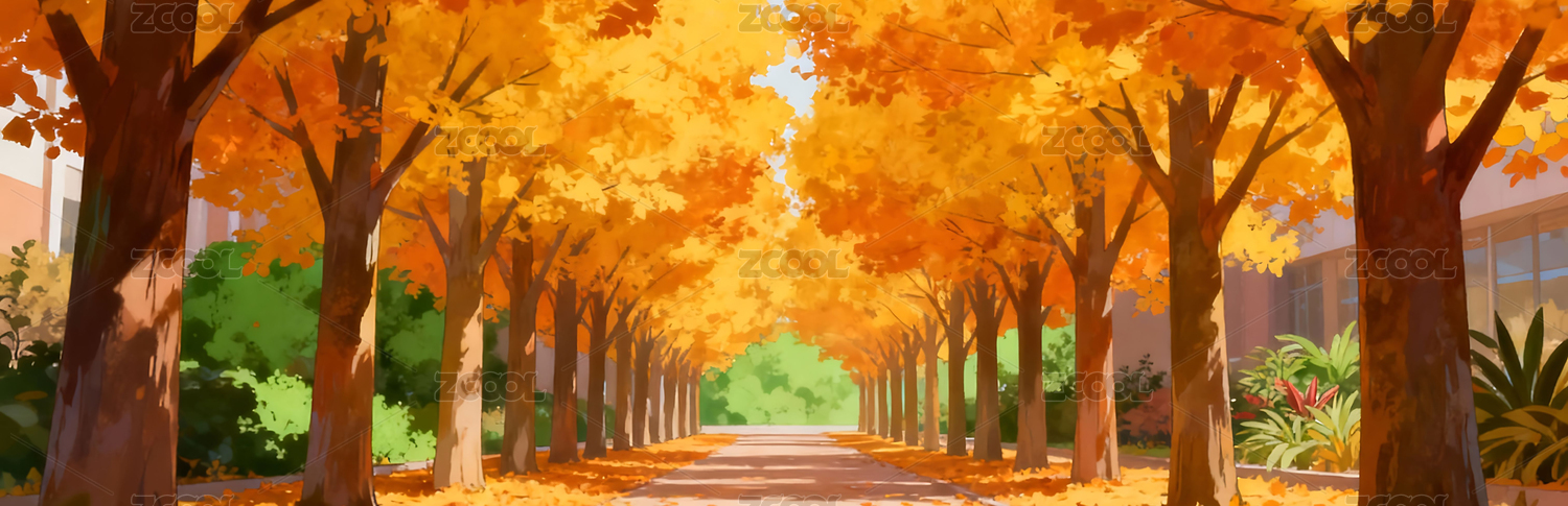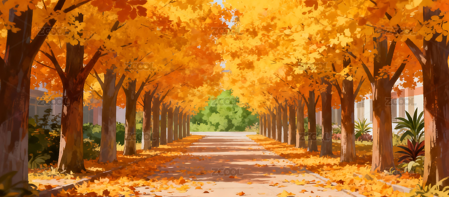 秋日校园小道插画
