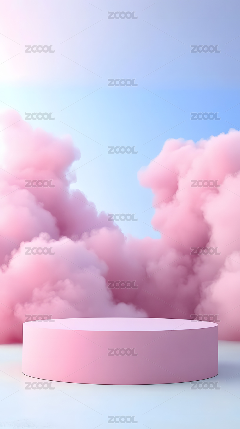 蓝色天空粉色云烟电商产品展台