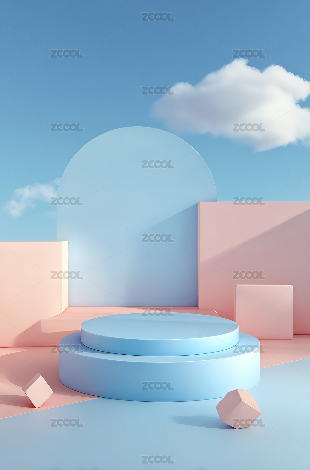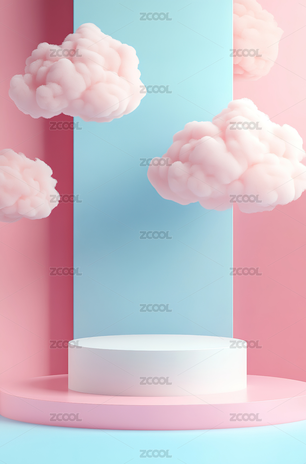 粉色云朵与圆形展台