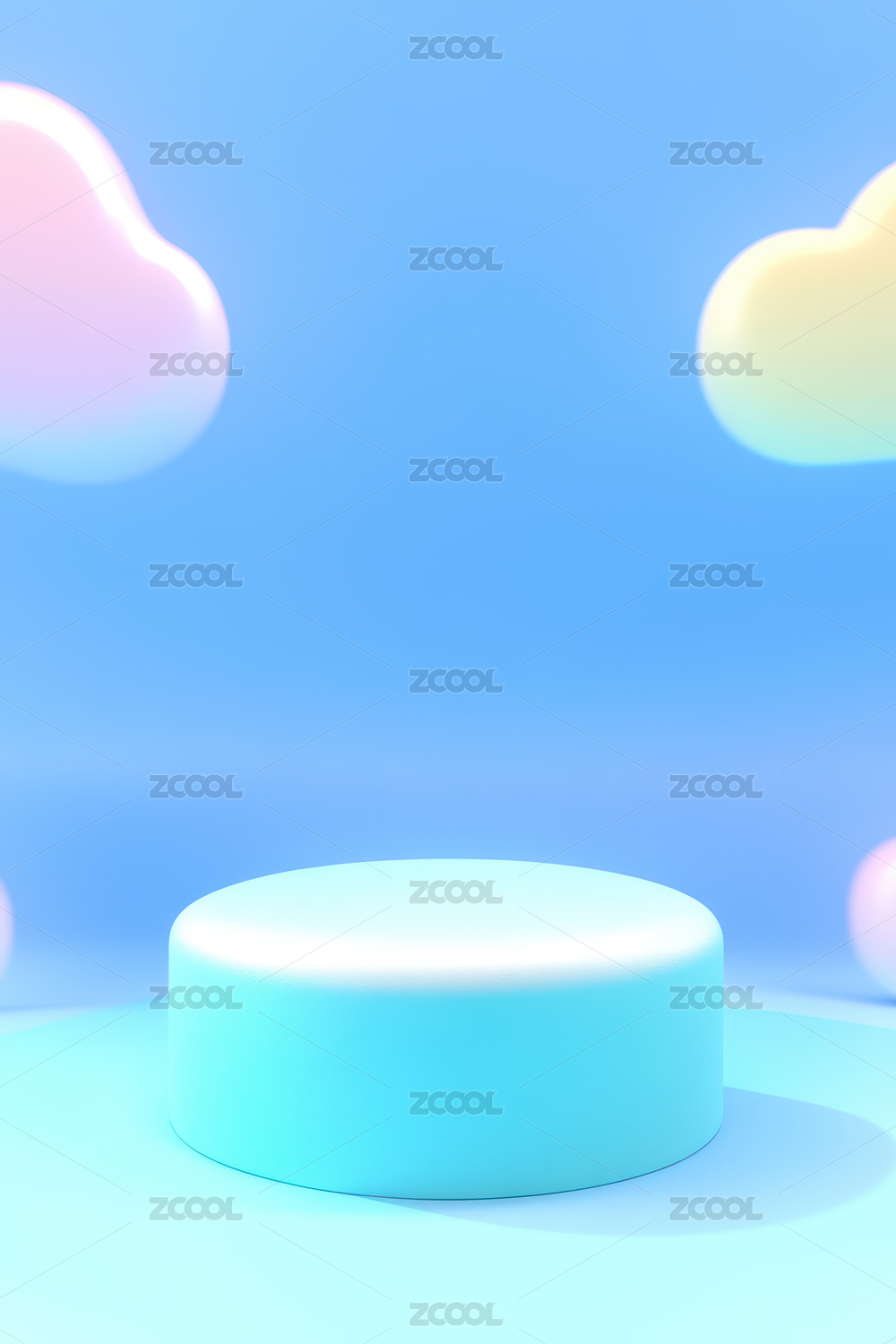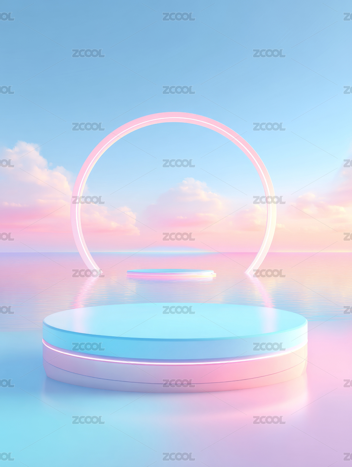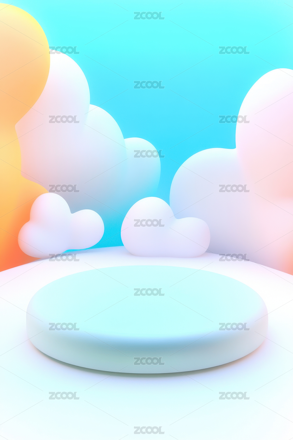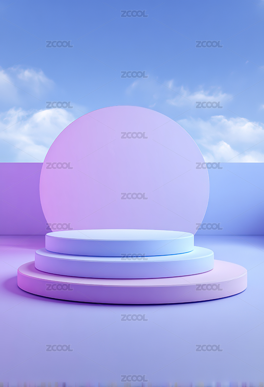 渐变色圆形展台与天空背景
