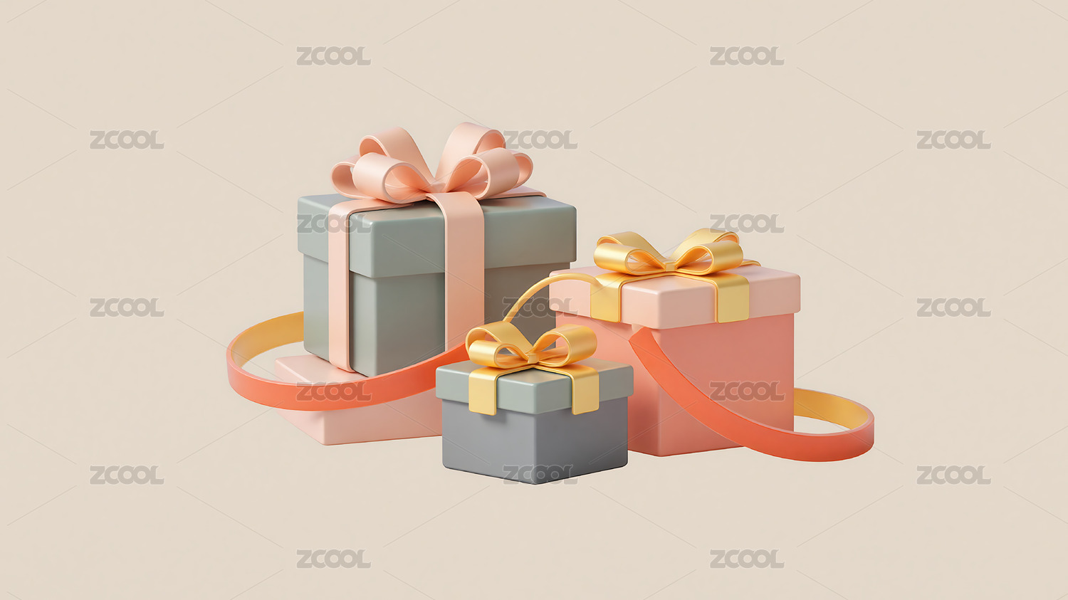春节新年圣诞节礼盒3D元素电商购物节插画