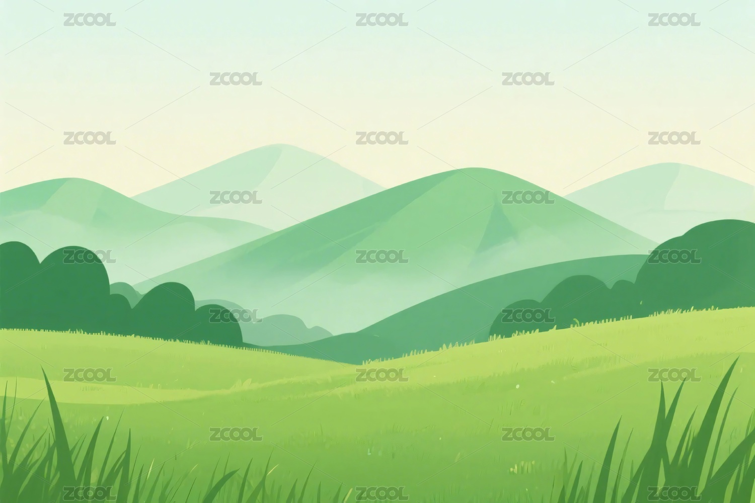自然户外绿色乡村田野插画背景壁纸