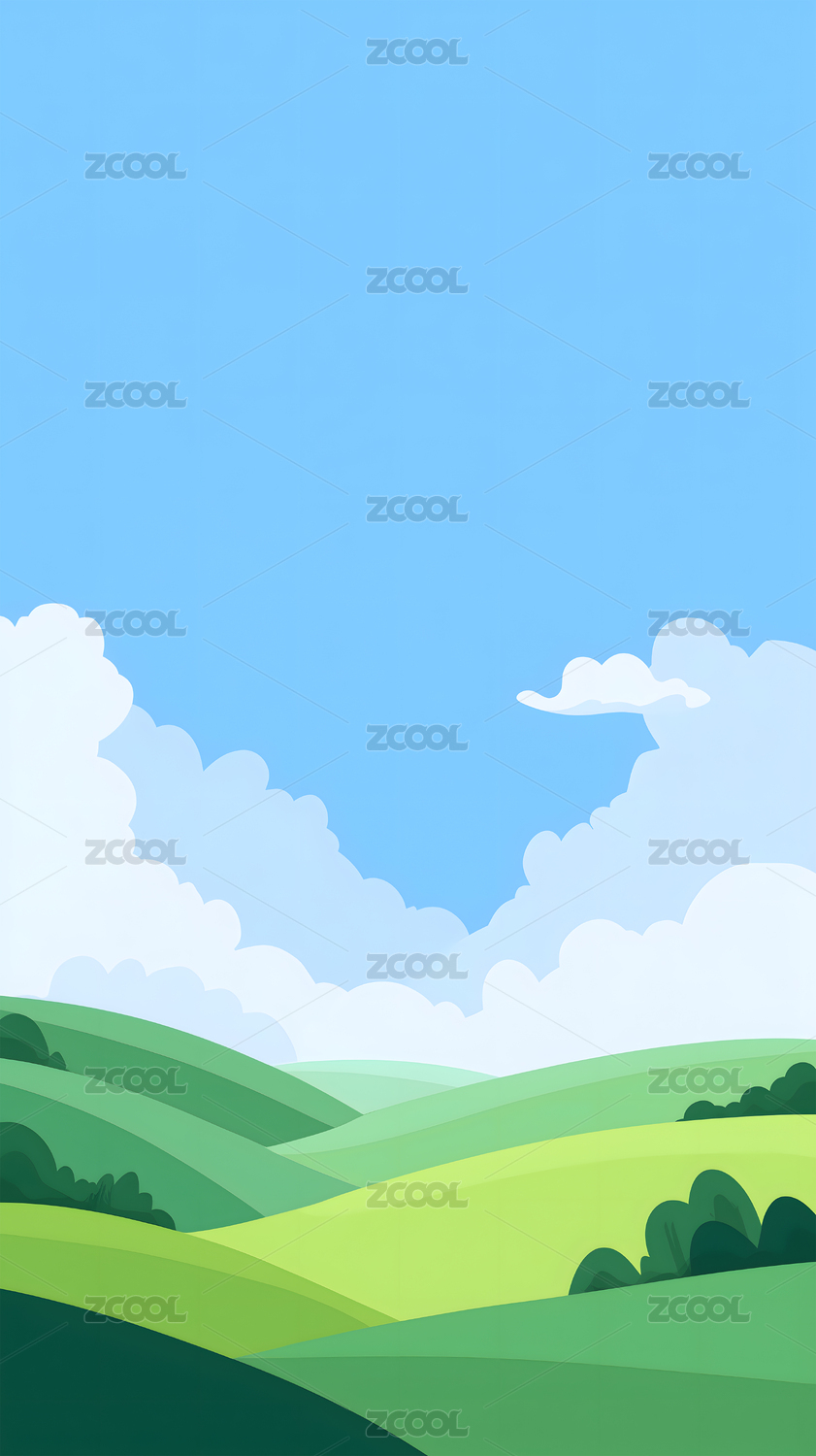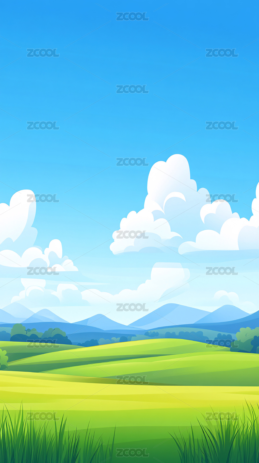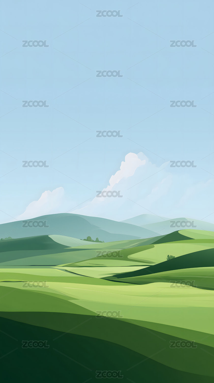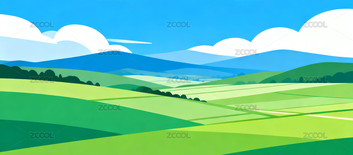 自然户外绿色乡村田野插画背景壁纸