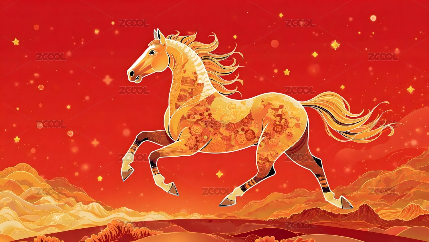 金马奔腾红色背景