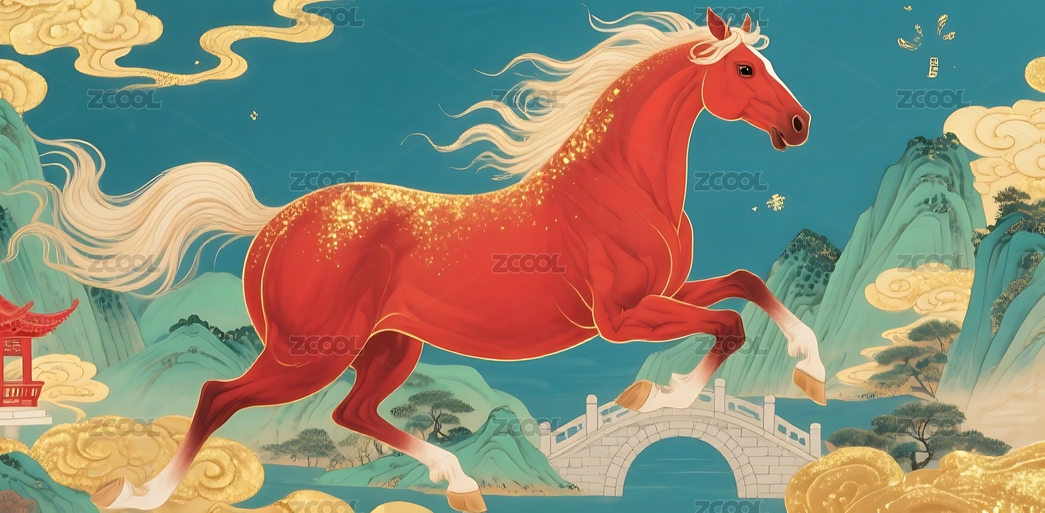 骏马祥云中国风