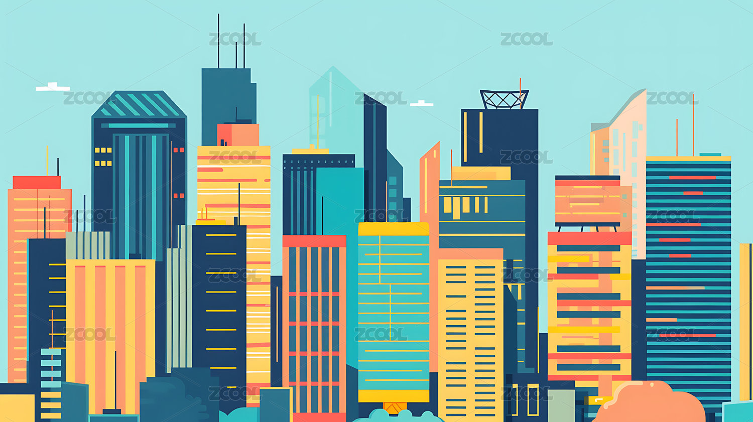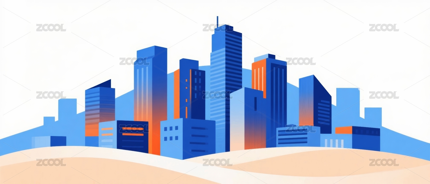 商务几何平面城市建筑插画背景