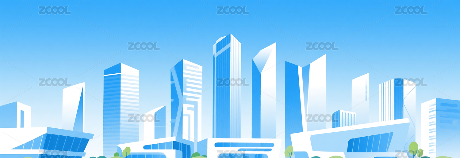 蓝色极简城市插画背景