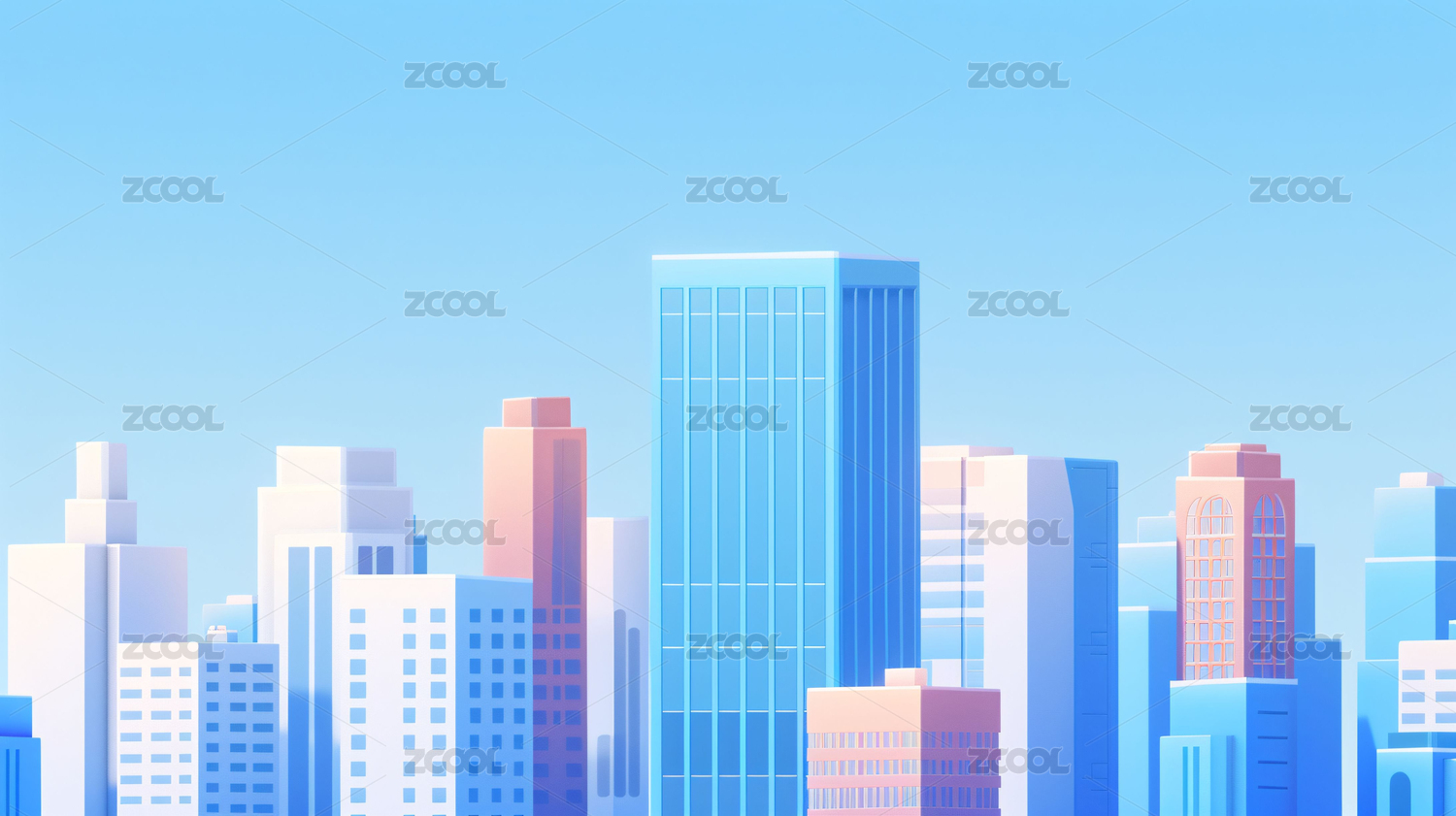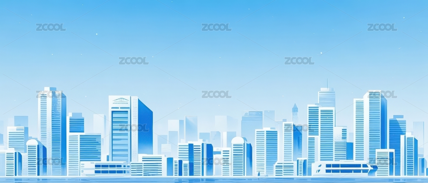 清新风格的蓝色城市天际线