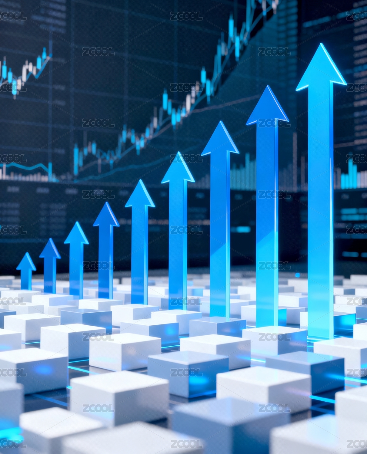 蓝色金融经济柱状图增长箭头背景