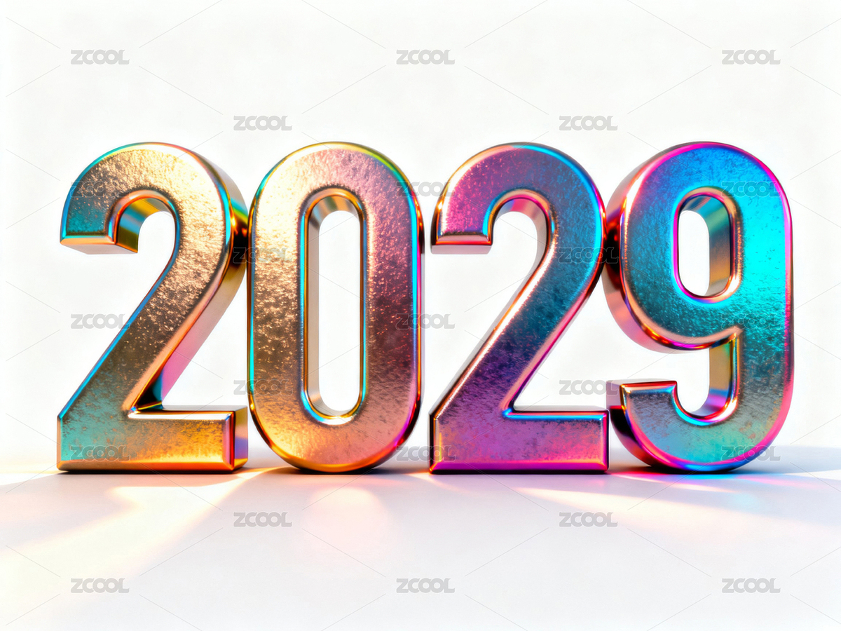 2029,数字,彩虹色,3D,光泽,金属,质感,未来感,节日,科技
