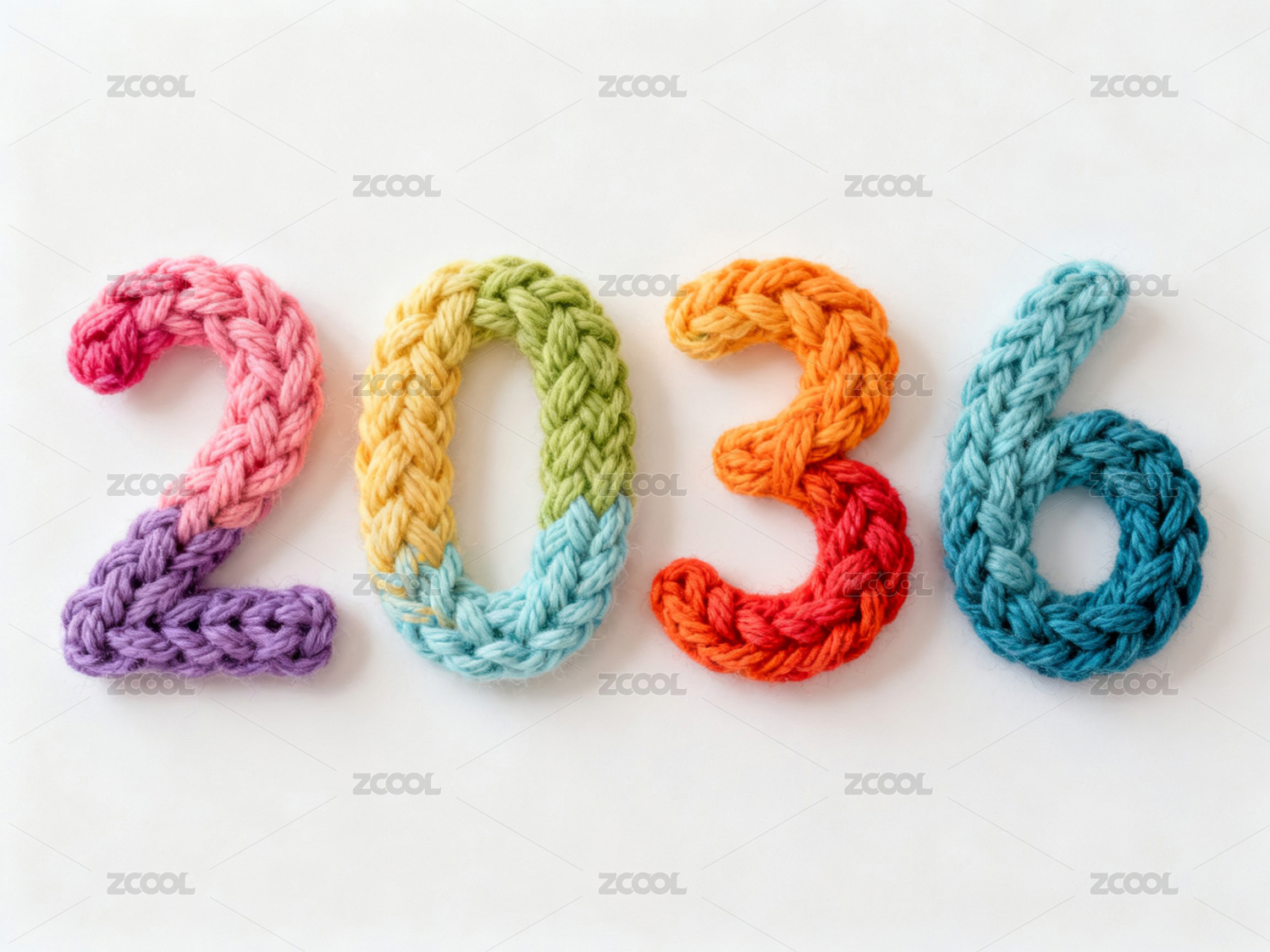 彩色毛线编织的2036年数字