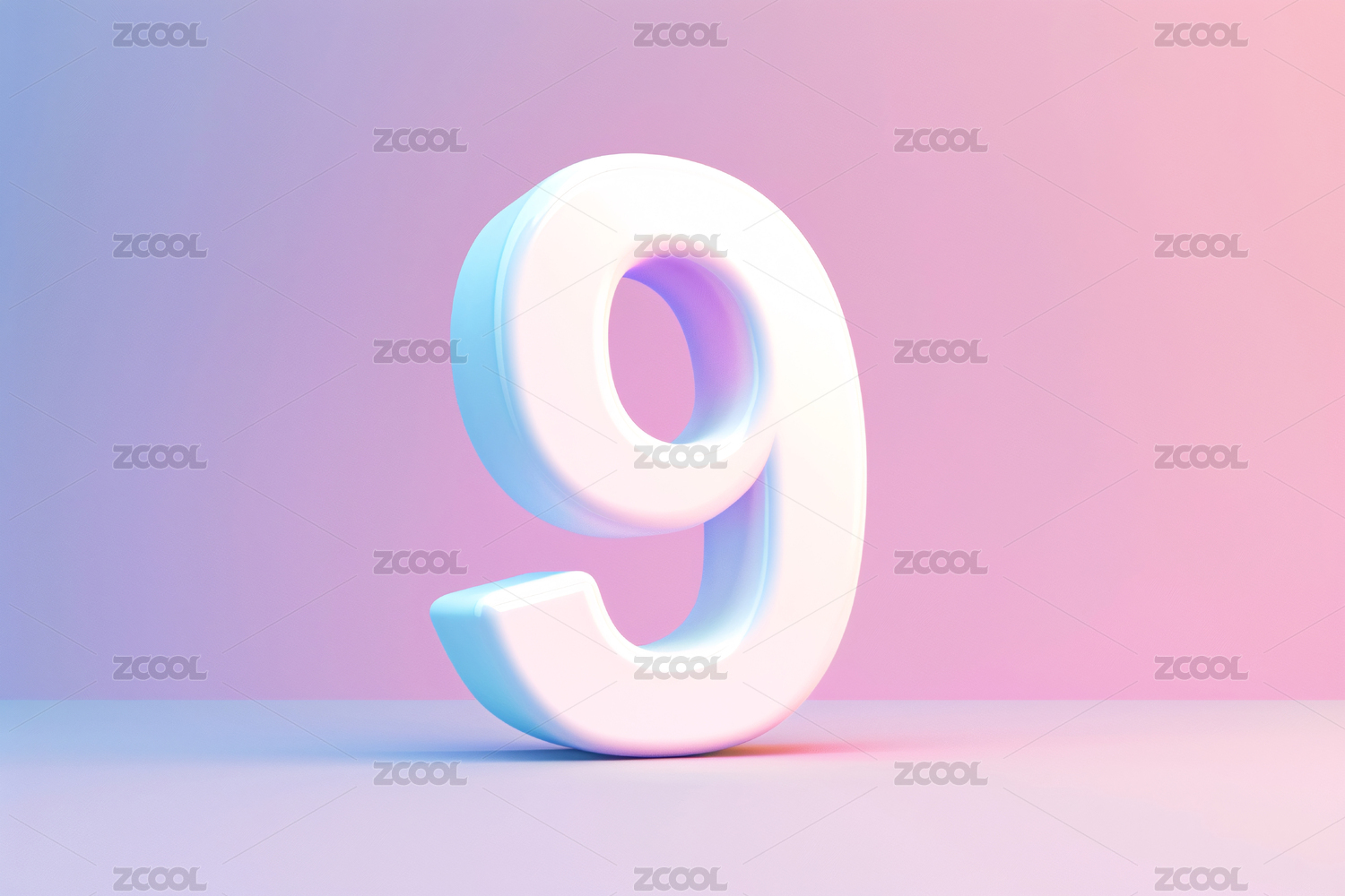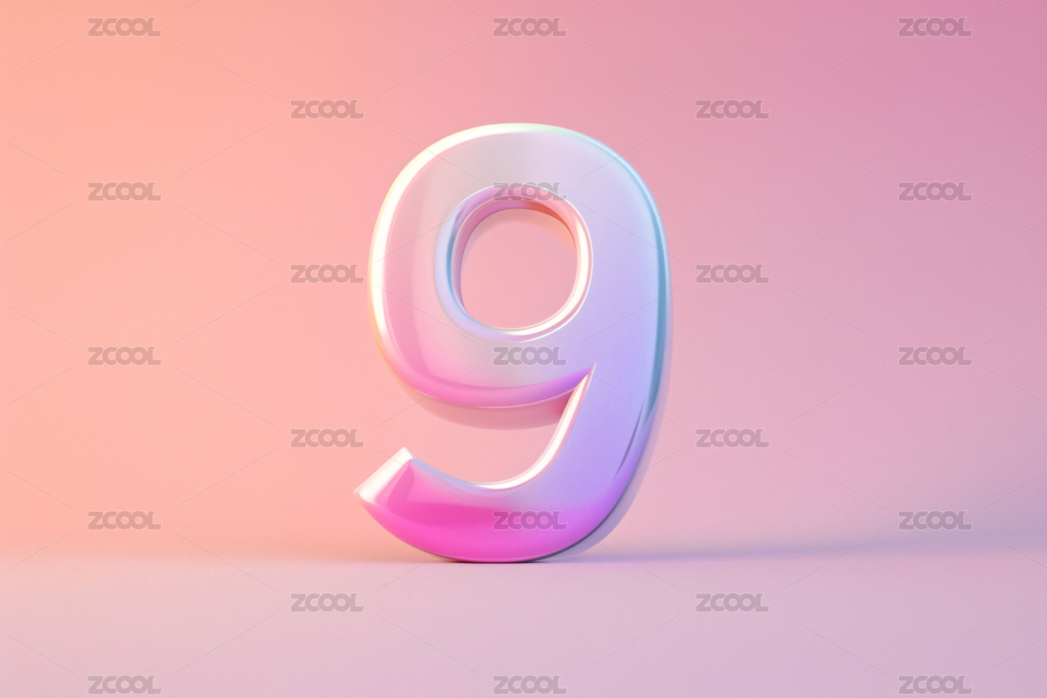 数字9,彩虹色,3D,渲染,金属,光泽,粉色,背景,光影,效果