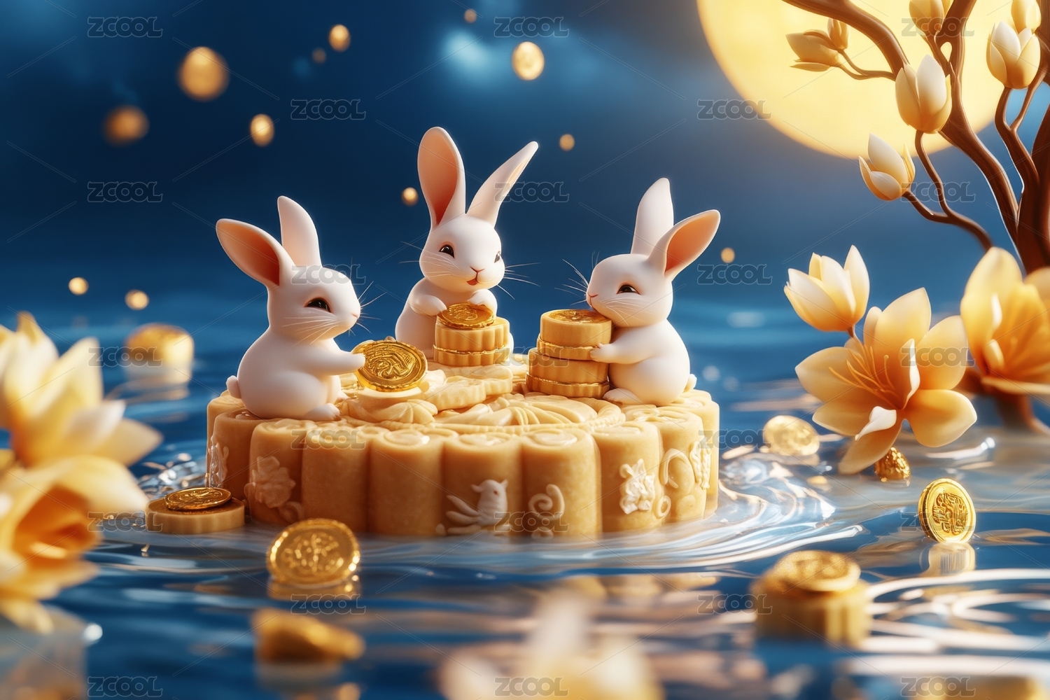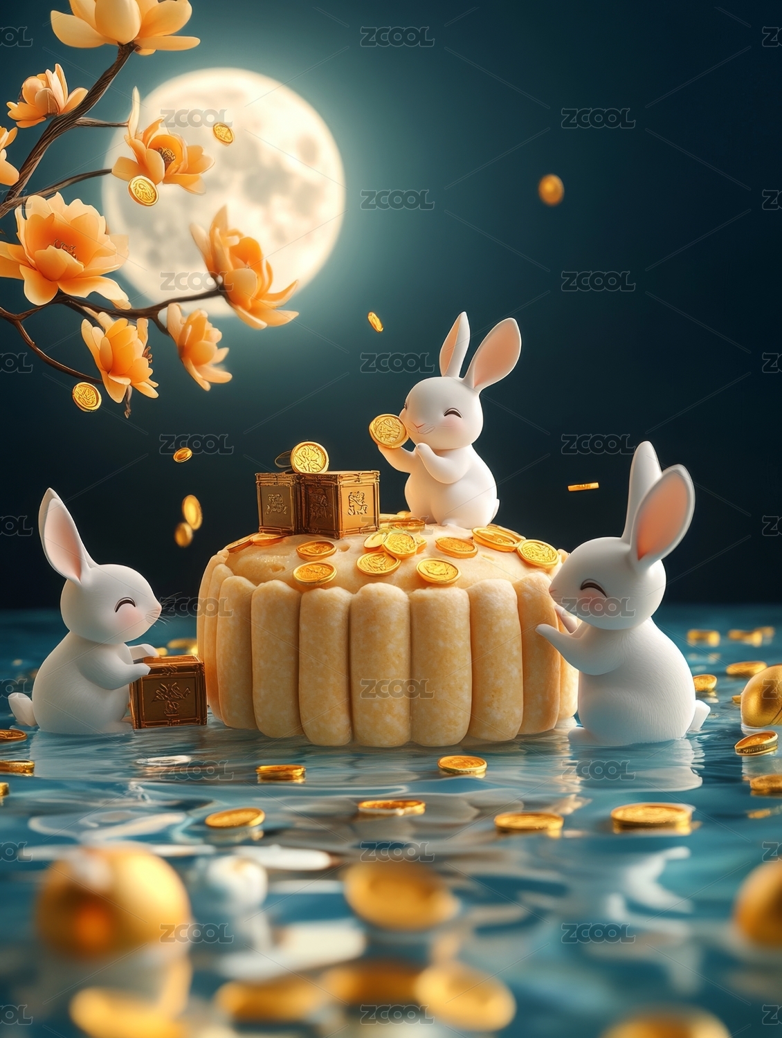 艺术,梦幻,装饰,传统,夜晚,水面,月饼,祥和,节日,中秋