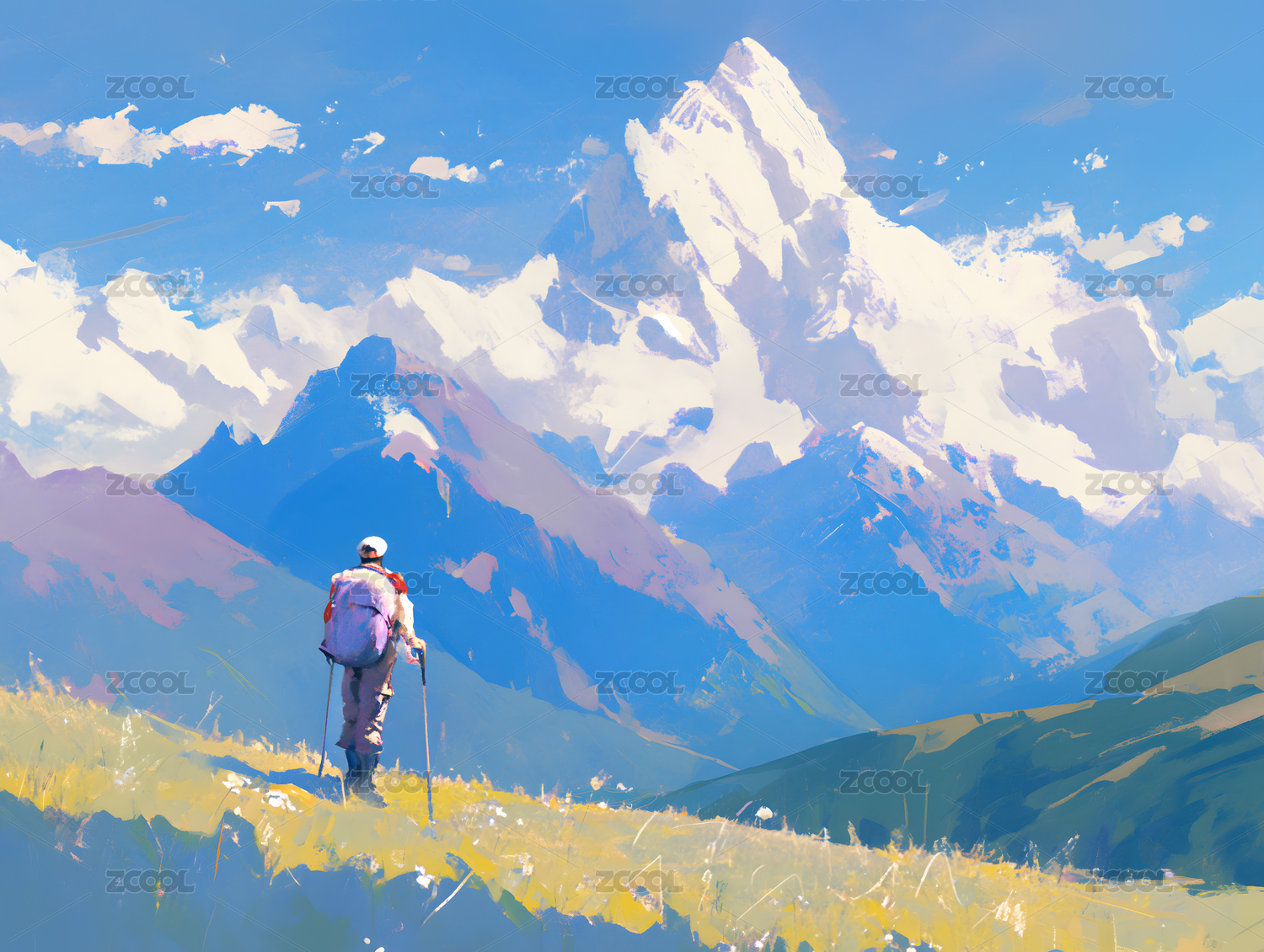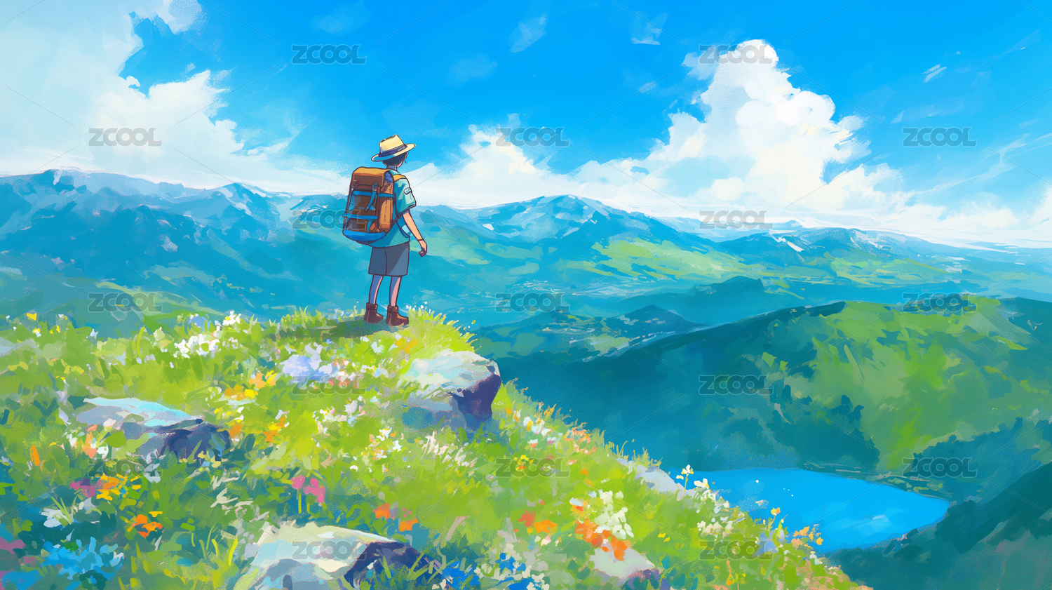 艺术,自然,色彩,明亮,卡通,插画,户外,岩石,蓝天,风景