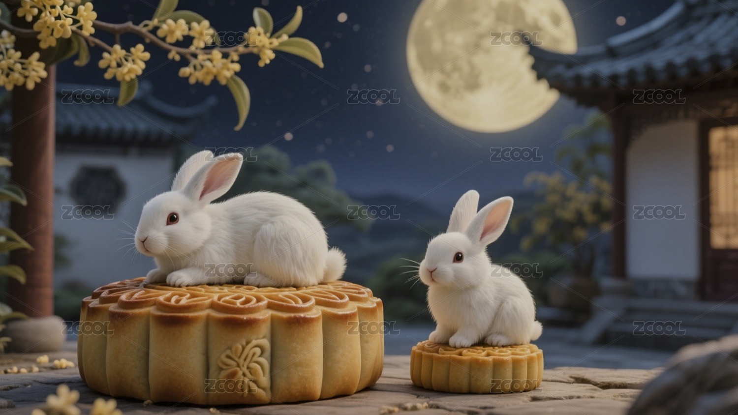 艺术,背景,梦幻,温馨,装饰,传统,夜晚,兔子,金币,月饼