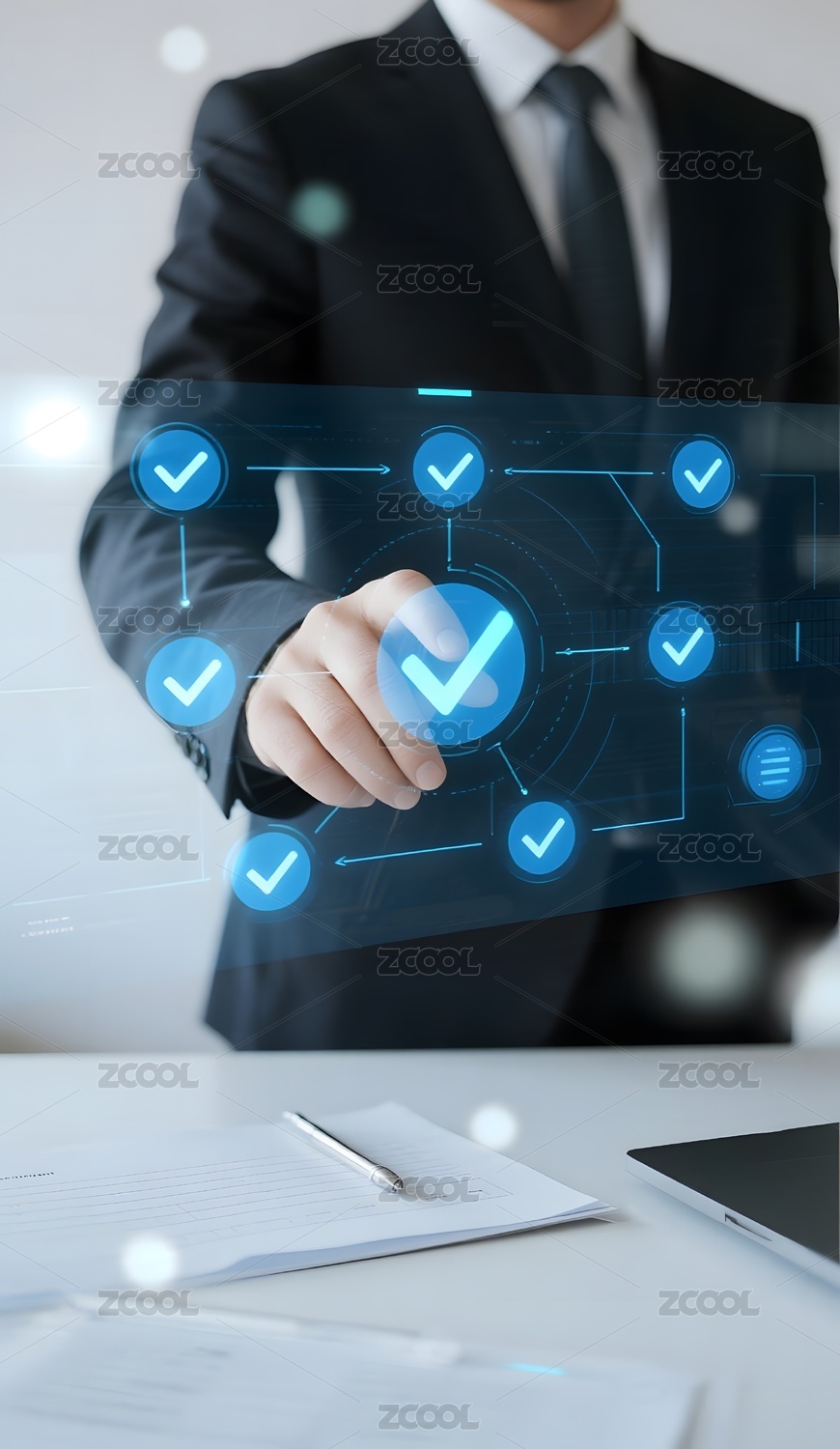 商务人士触碰虚拟勾选框