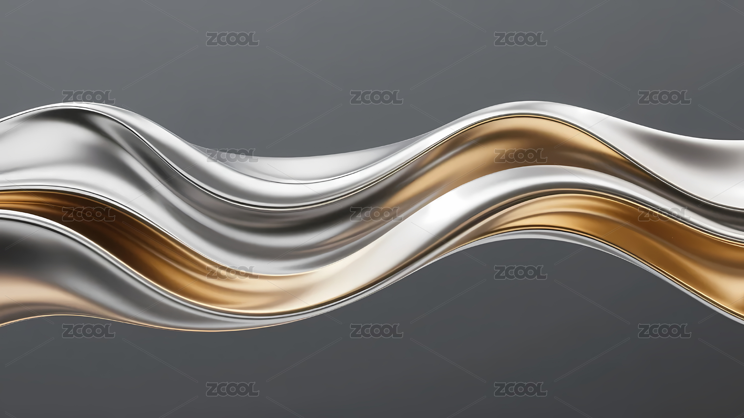 设计,抽象,金色,银色,流动,波浪,渐变,金属,光滑,深灰