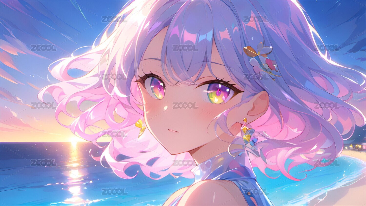 海边,少女,美女,动漫,漫画,壁纸,插画