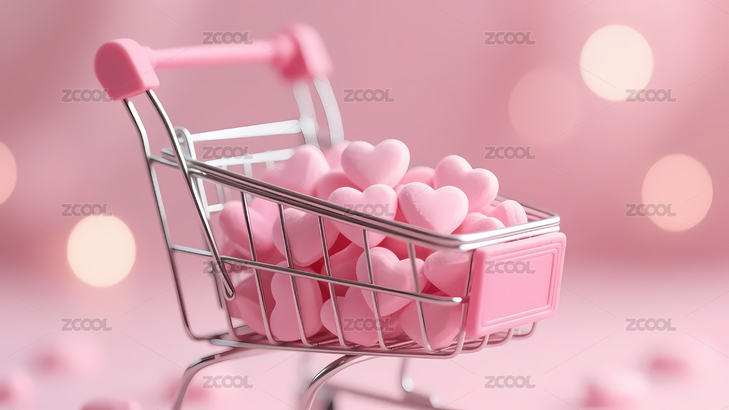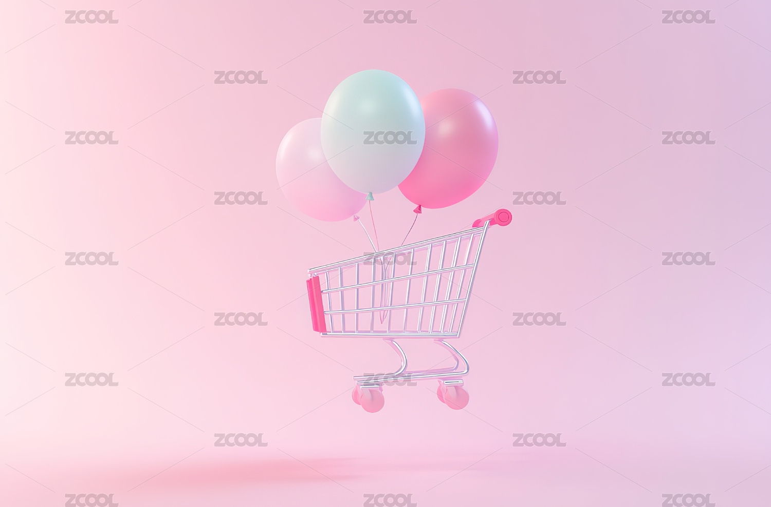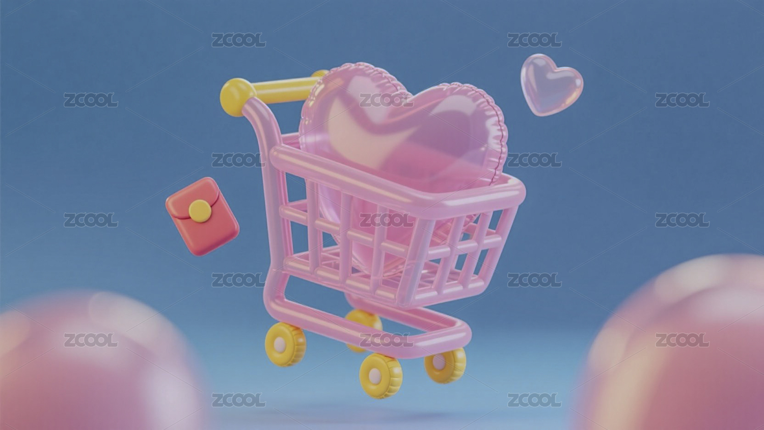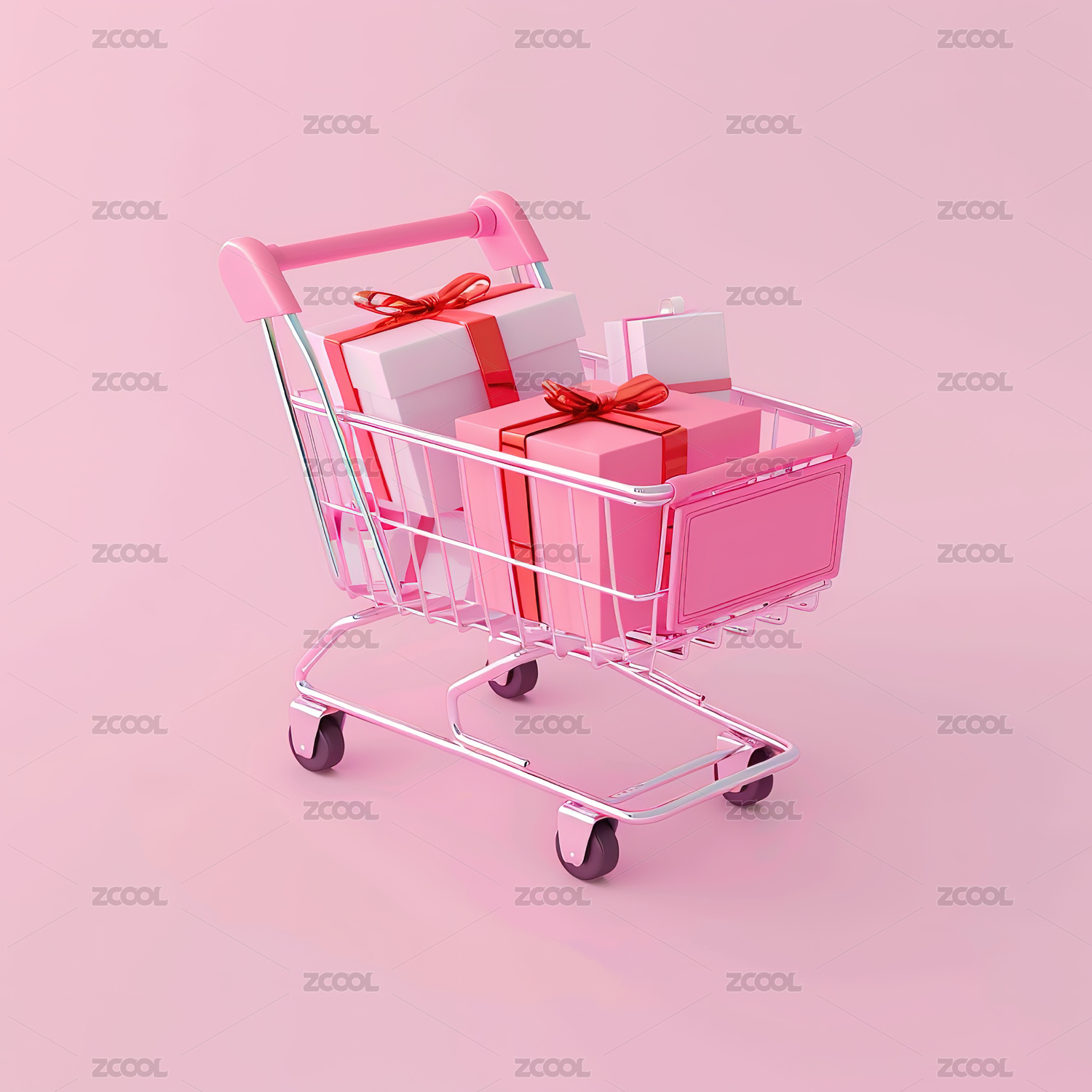购物车,礼物盒,粉色云,数字艺术,礼品,插画,粉色,云朵,飘带,购物