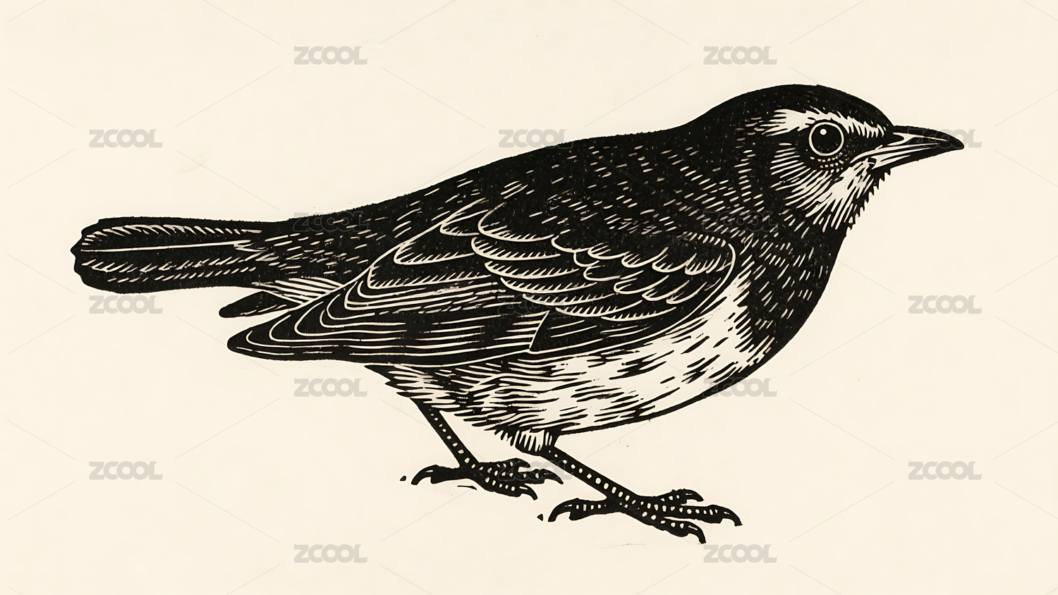 鸟,版画,黑白插画,矢量风格,线条艺术