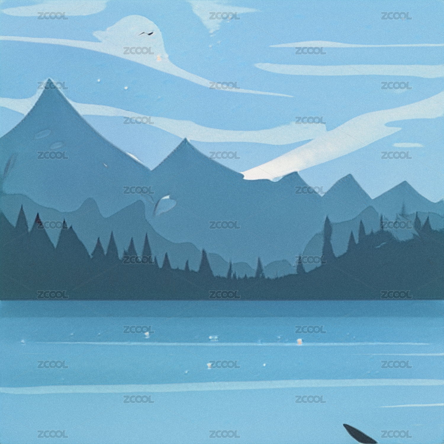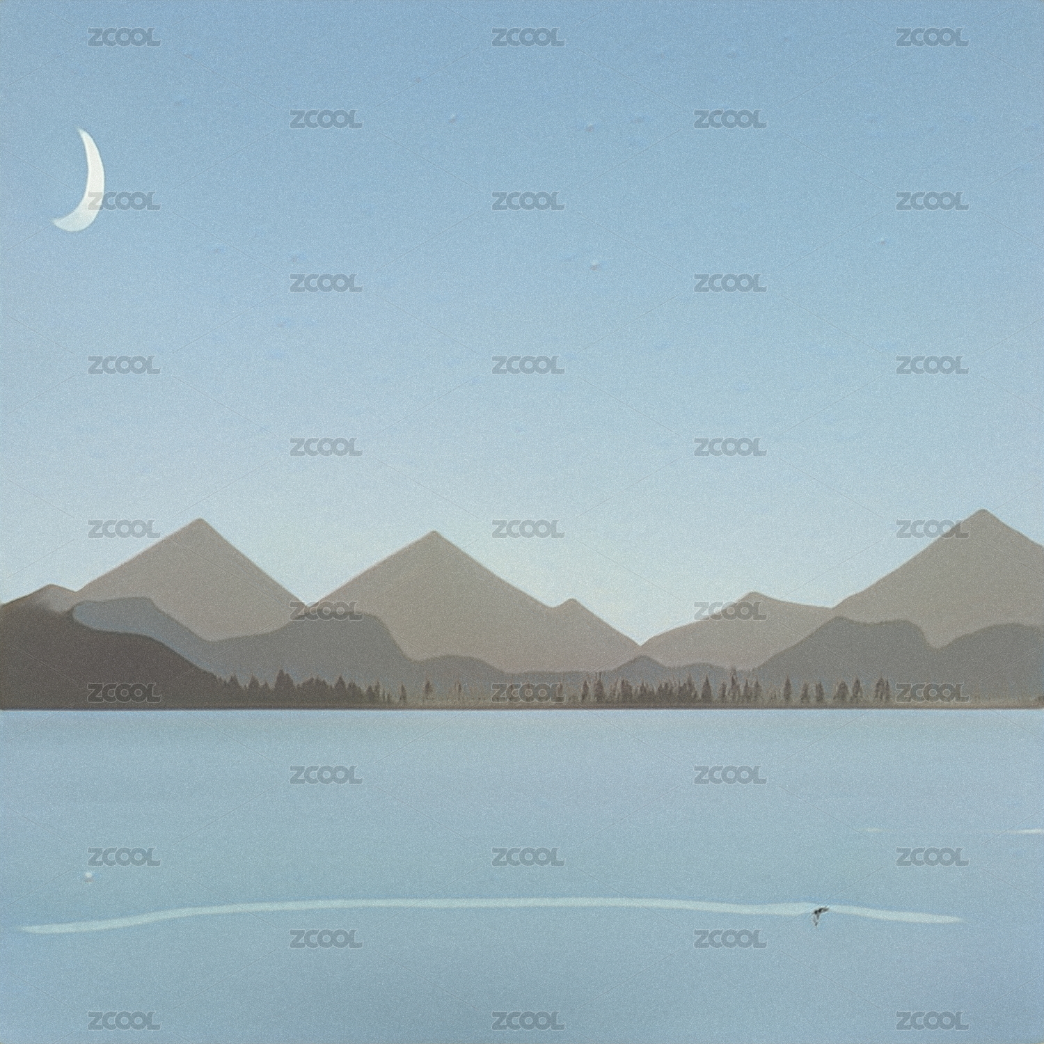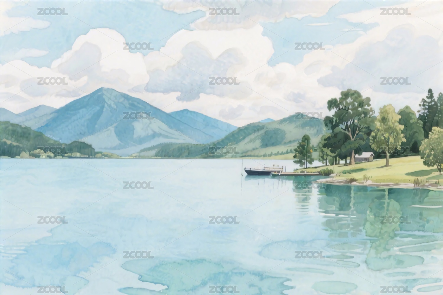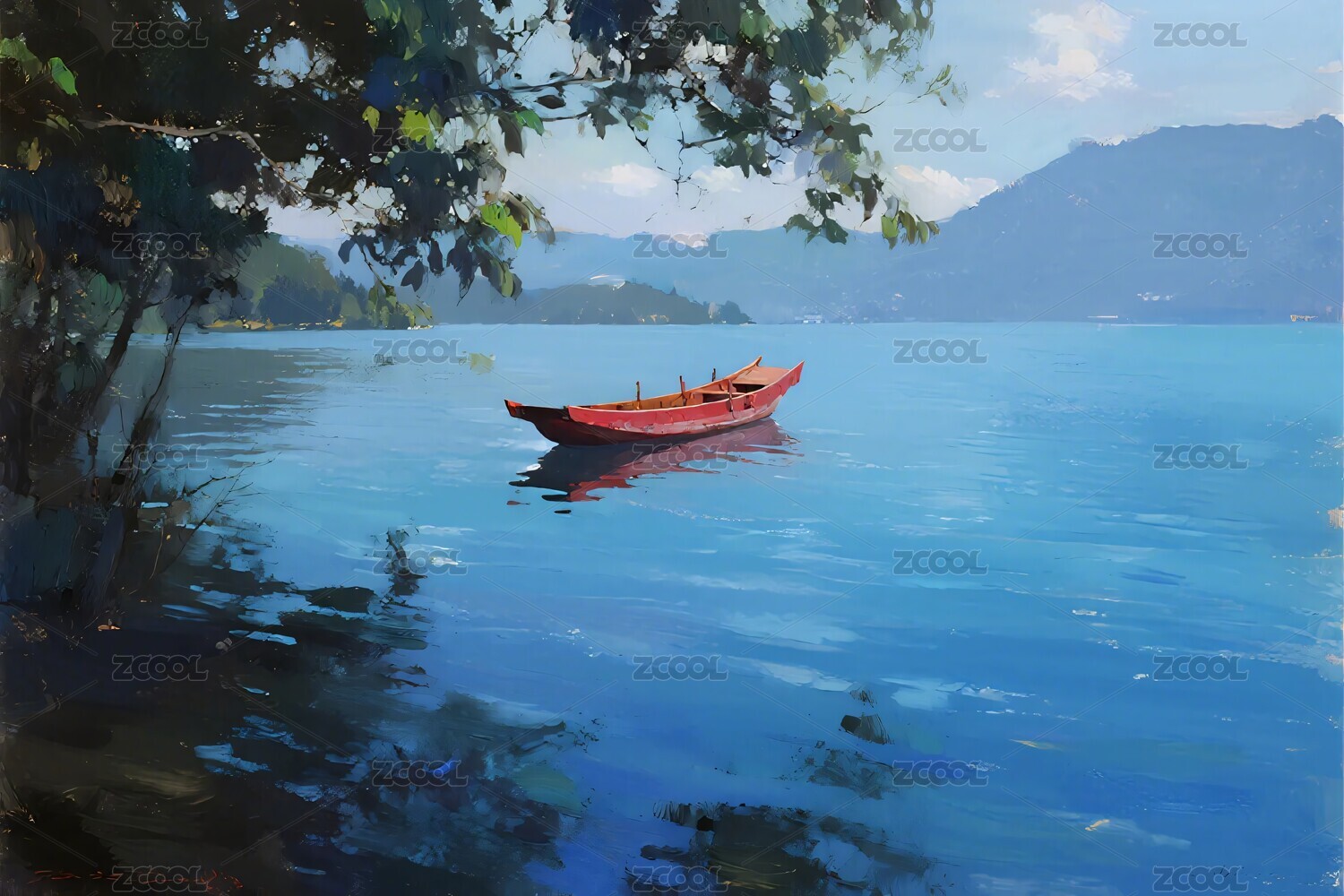山水,湖泊,小船,风景,画中画,插画,自然,宁静,宁静风景,湖泊风景