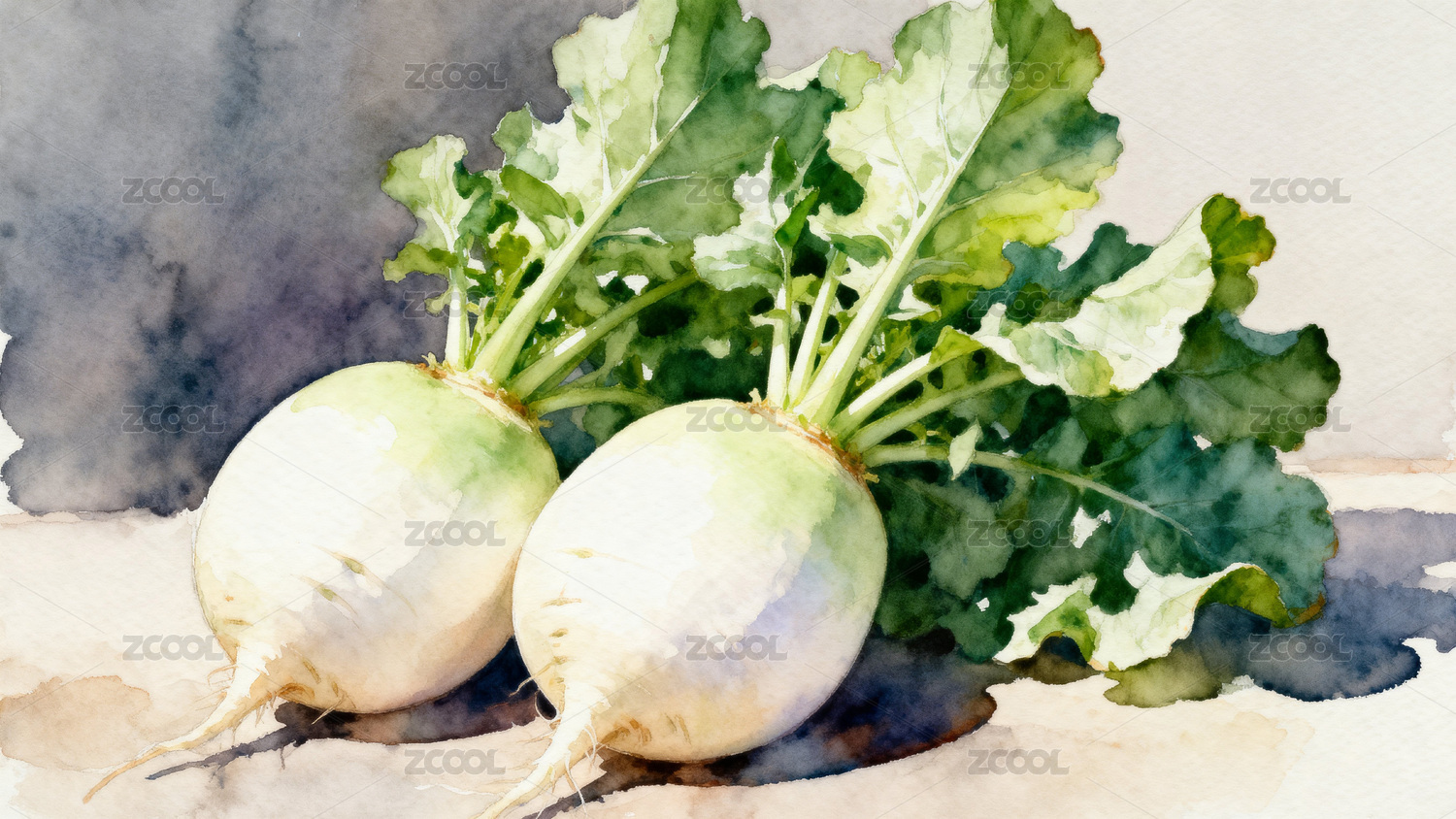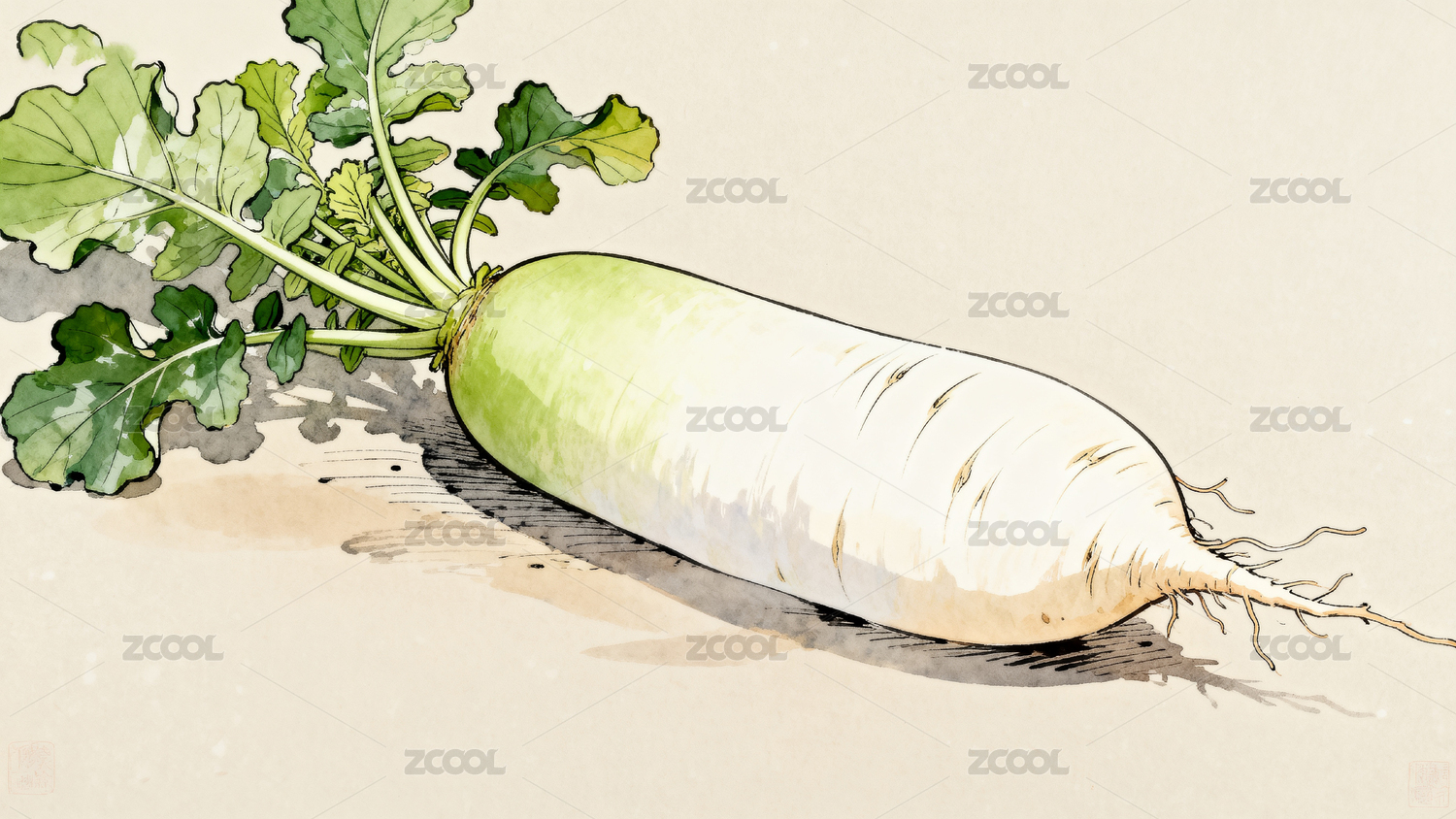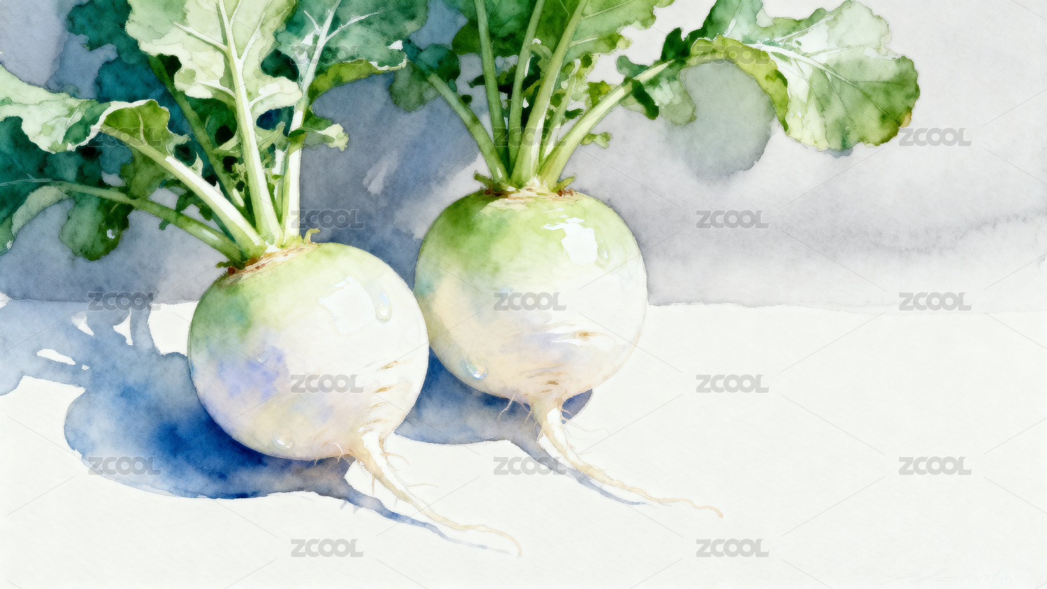 白背景新鲜萝卜有机蔬菜手绘扁平水彩插画