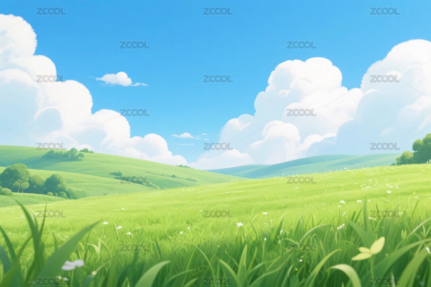 3D卡通清新自然户外草原背景壁纸