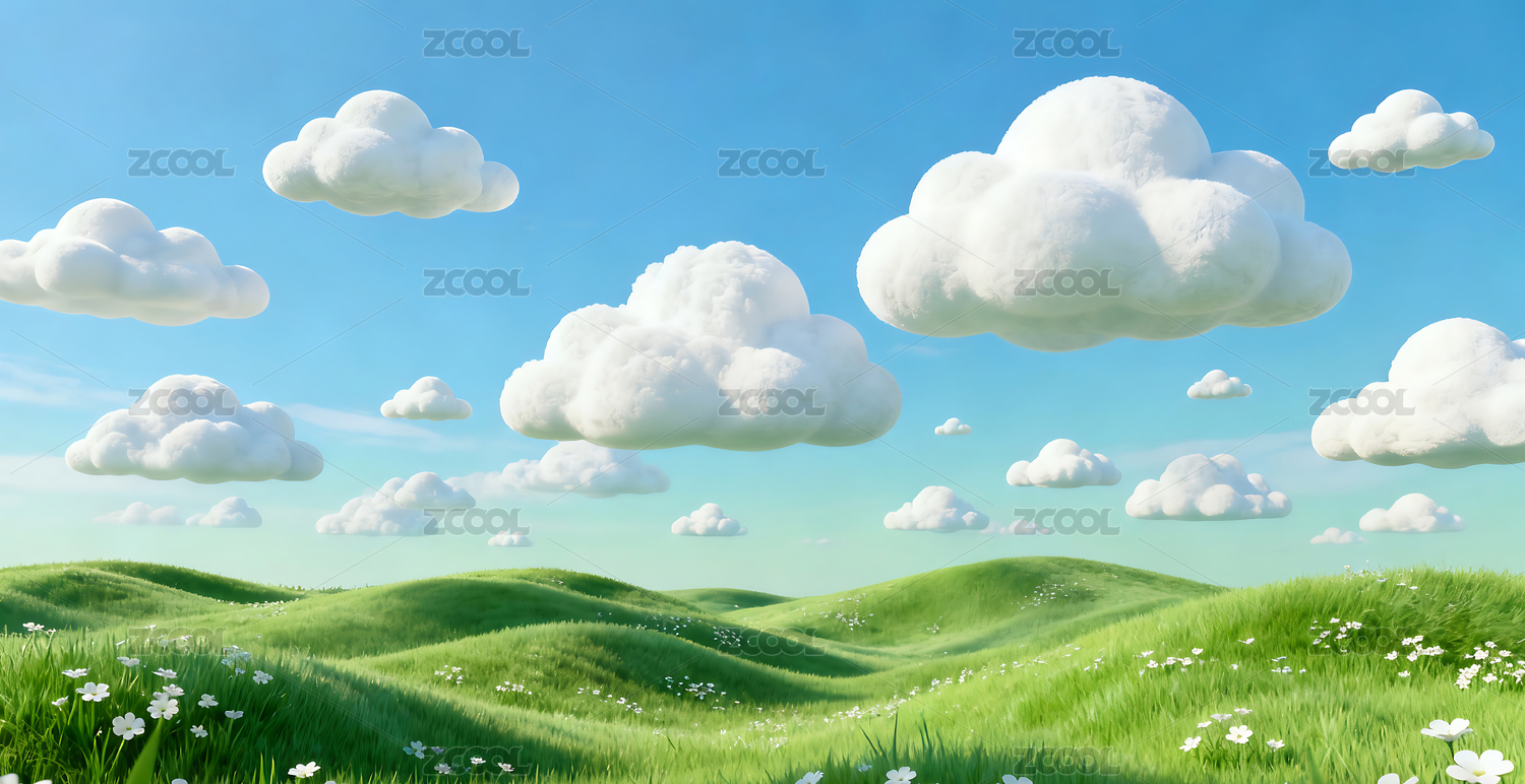 蓝天白云草原三维插画