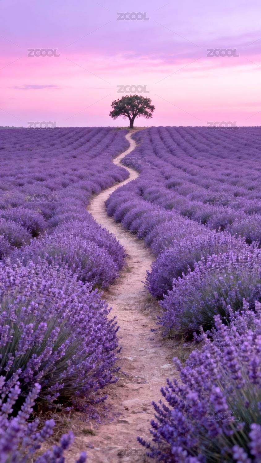 夏天普罗旺斯黄昏时分的薰衣草花田